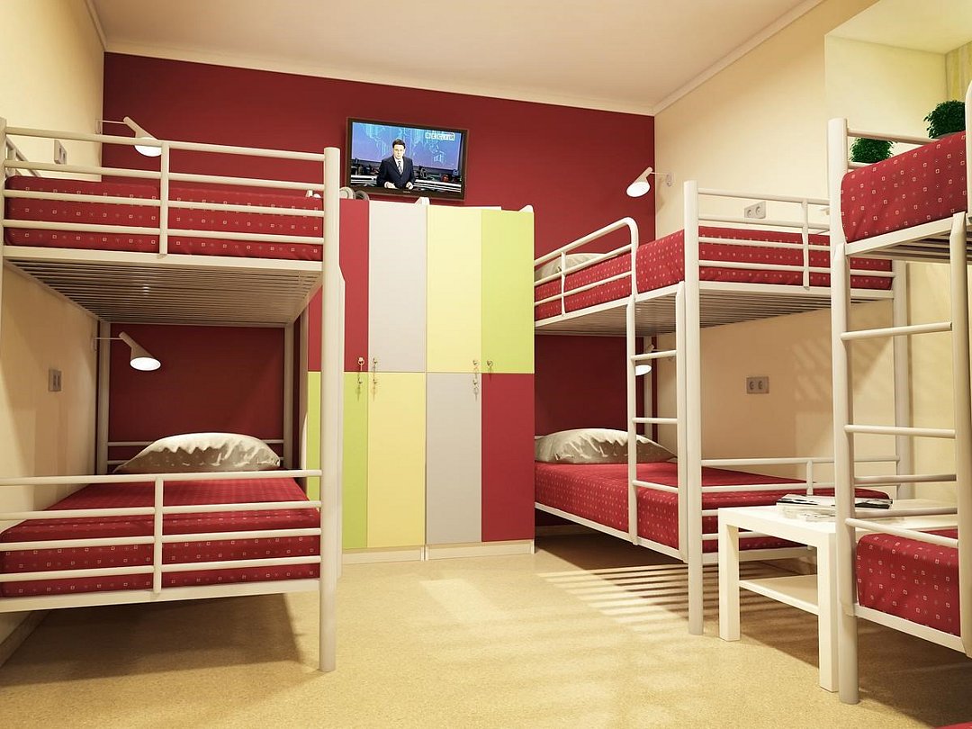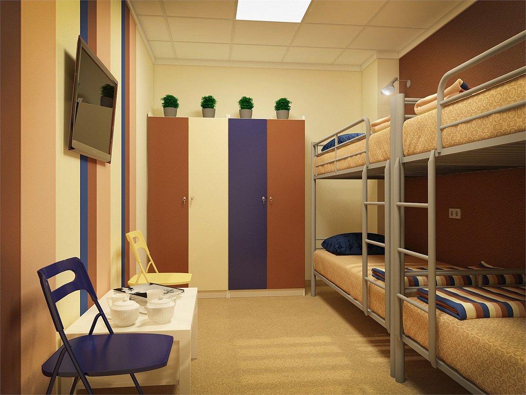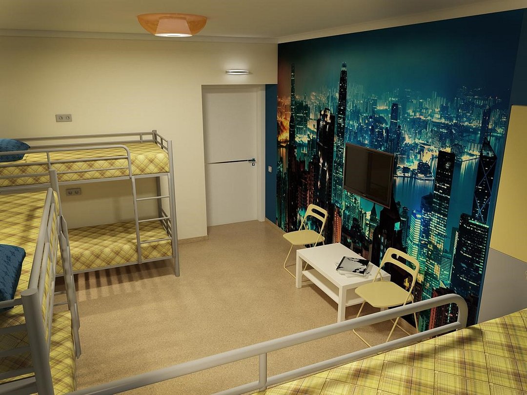 Номер 4-местный( 2-х ярусные кровати) Удобства: Wi-Fi, телевизор, шкафы с ключами, общая кухня, туалет и душ на этаже. На этаже имеется мини библиотека.Услуги и удобства