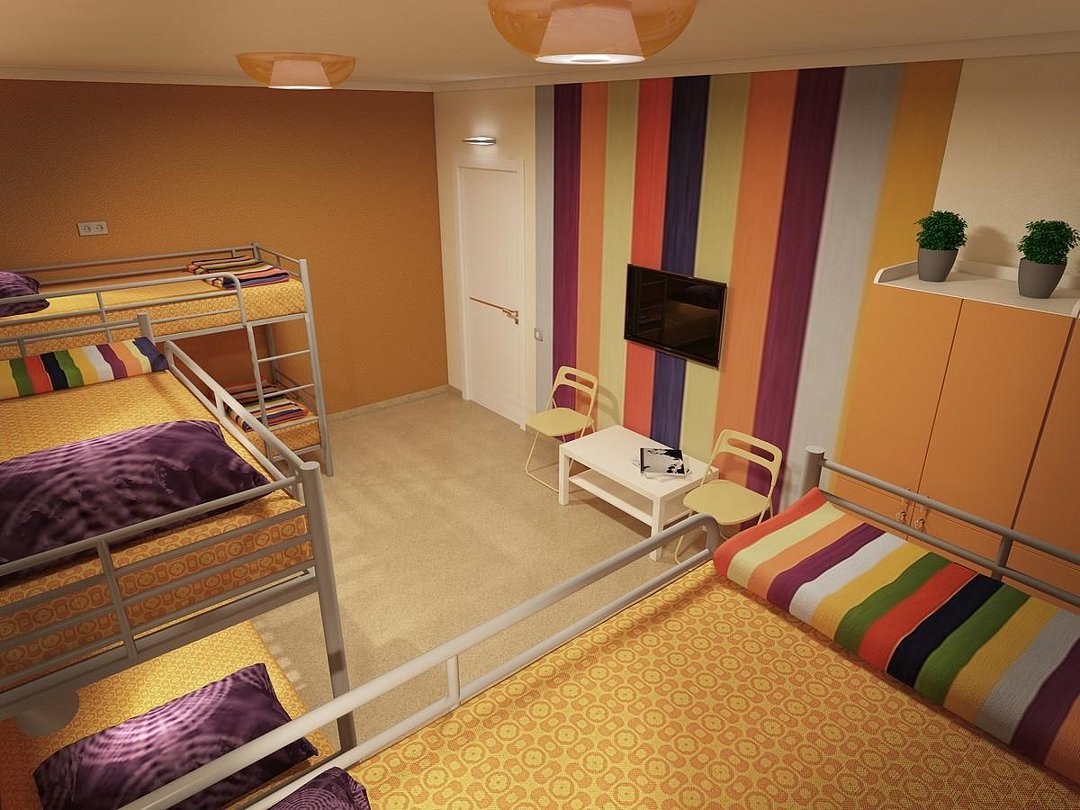 Wi-Fi, светильник, тумбы, шкаф для одежды, журнальный столик, двухъярусные кровати, кулер на этаже, тумба, санузел на этаже, телевизор с плоским экраном, можно с питомцамиВ месте в номере