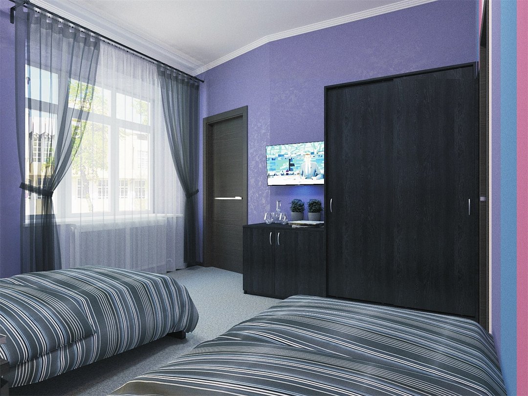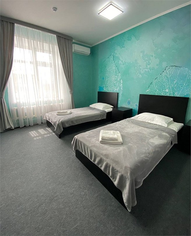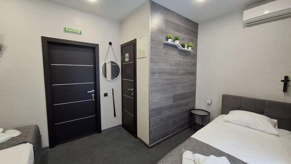 телевизор, Wi-Fi, кондиционер, тапочки, две односпальные кровати, тумбы, шкаф для одежды, комод, вид во двор, санузел на этаже, можно с питомцамиВ гостиничном номере