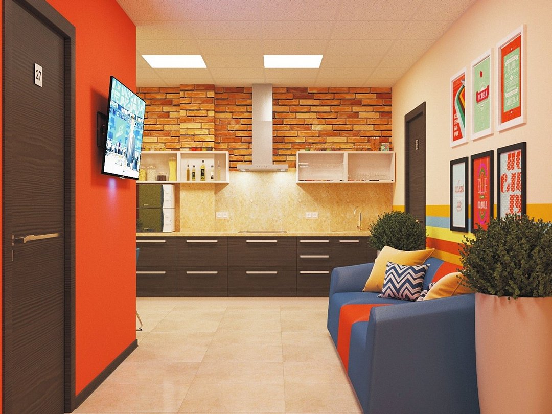 Wi-Fi, светильник, стулья, шкаф для одежды, журнальный столик, зеркало, стиральная машина, чайник, двухъярусные кровати, ковровое покрытие, кулер на этаже, центральное кондиционирование, санузел на этаже, сушилка для белья, телевизор с плоским экраном, кухонный уголок, без окна, душ на этаже, можно с питомцамиВ месте в номере