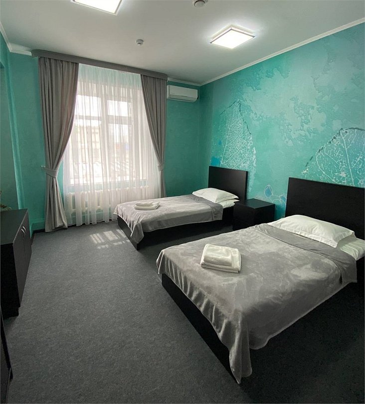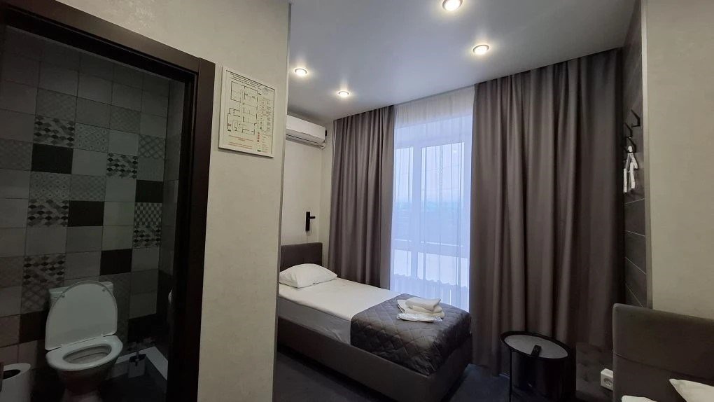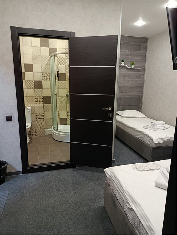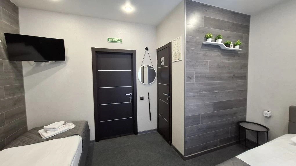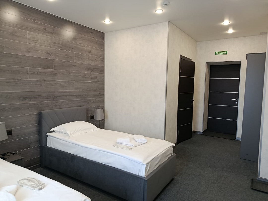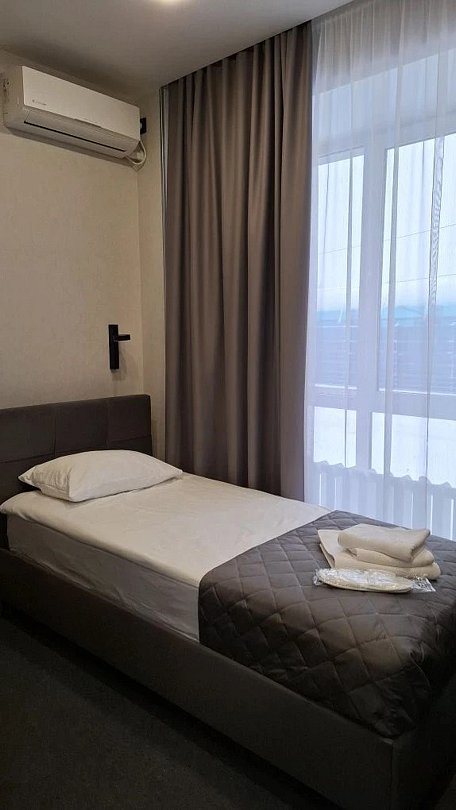 телевизор, Wi-Fi, кондиционер, светильник, фен, две односпальные кровати, шкаф для одежды, унитаз, раковина, вид на город, вид на стадион, панорамные окна, душ на этаже, можно с питомцамиВ гостиничном номере