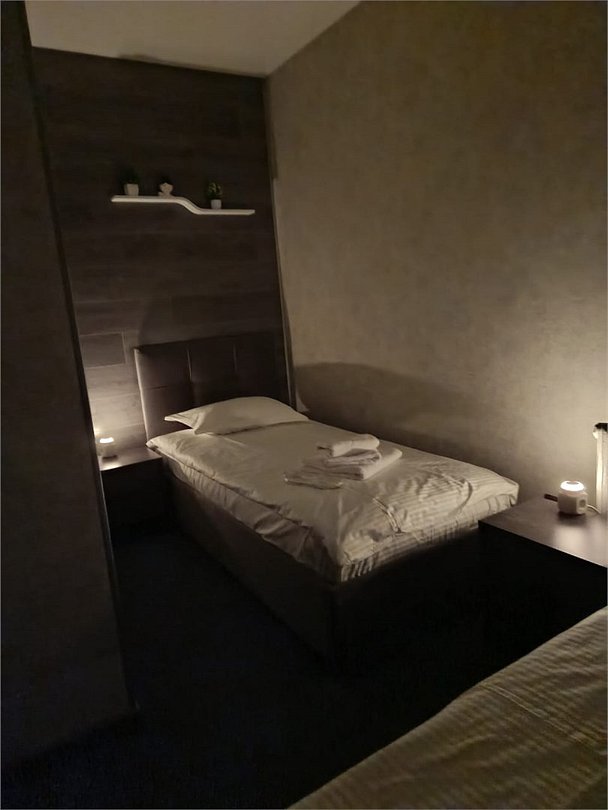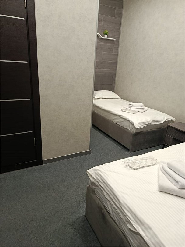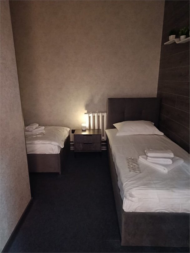 Номер с двумя раздельными кроватями. Душ и санузел в номере. Номер без окна. Плоский телевизор, шкаф для одежды. На этаже : кухня, стиральная машина и машина для сушки белья, гладильная доска. Возле ресепшена имеется мини библиотекаУслуги и удобства