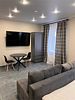 телевизор, Wi-Fi, холодильник, фен, микроволновая печь, ванна или душевая кабина, санузел, двуспальная кровать, тумбы, стулья, шкаф для одежды, обеденный стол, зеркало, кухня, чайник, унитаз, отопление, душ, вид на город, плиточное покрытие, вид во двор, туалет, диван-кровать, раскладной диван, номер для некурящих, уборка номера, открытый шкаф, без питомцевВ гостиничном номере