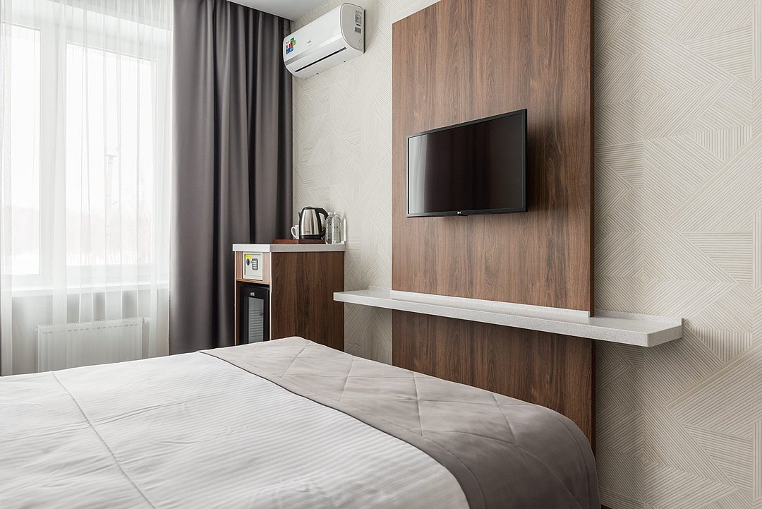 Номер Стандарт Double оснащен кондиционером, чайной станцией и собственной ванной комнатой. Мини бар входит в стоимость, пополнение 1 раз в сутки.Услуги и удобства