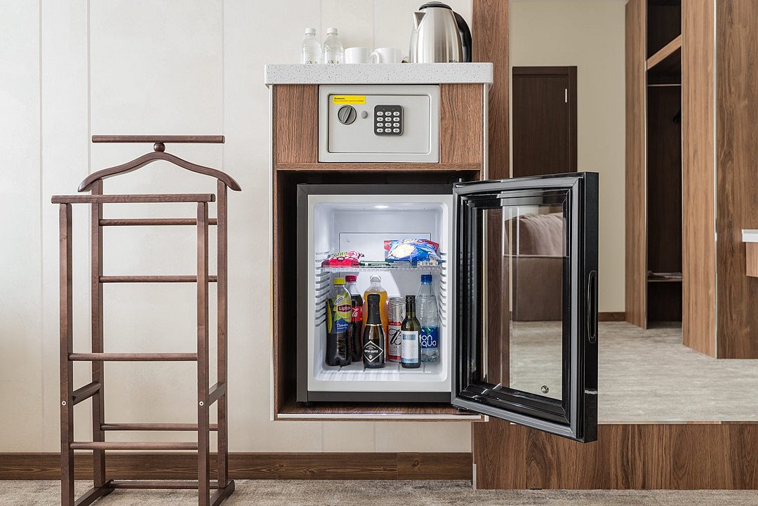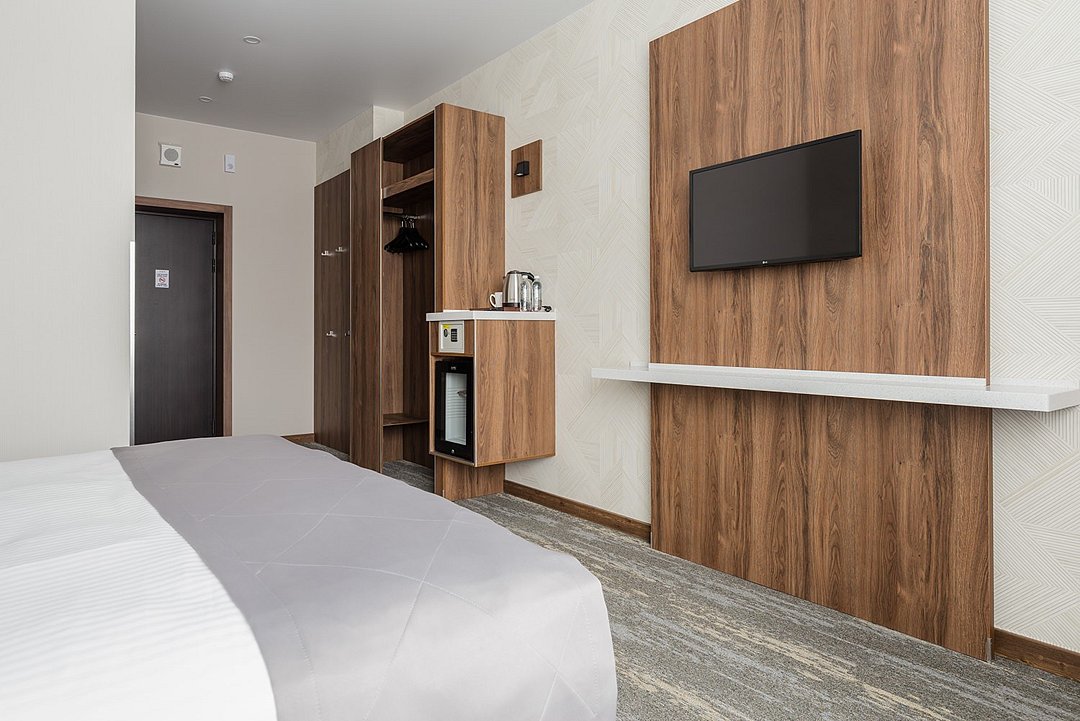 телевизор, Wi-Fi, кондиционер, светильник, фен, электронные замки, душевая кабина, ванна или душевая кабина, санузел, халаты, банные полотенца, тапочки, кровать «Queen size», вешалки, зеркало, мини-бар, чайный набор, сейф, чайник, унитаз, раковина, ковровое покрытие, душ, кулер на этаже, вид во двор, стаканы, туалетные средства, туалет, внутренний телефон, телевизор с плоским экраном, гостиничная парфюмерия, гигиенический душ, чайная станция, уборка номера, набор для приготовления чая и кофе, вешалки-плечики, бутилированная вода, мини-бар (платно), шапочка для душа, мыло, затемняющая штора, открытый шкаф, можно с питомцамиВ гостиничном номере