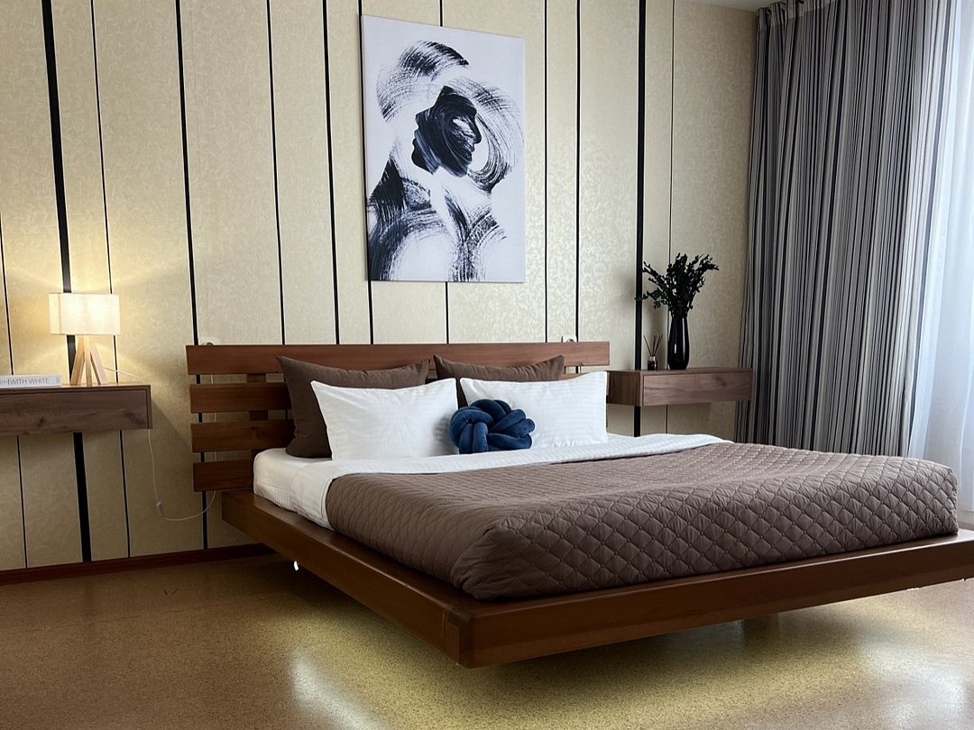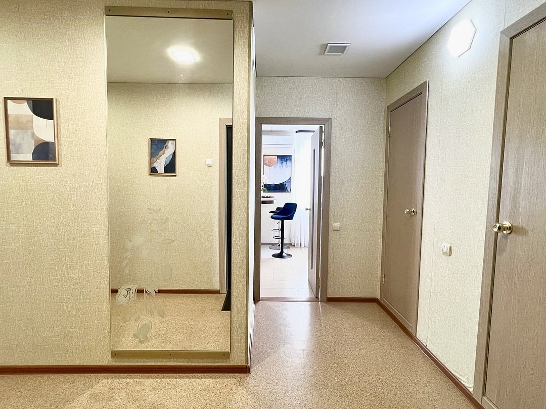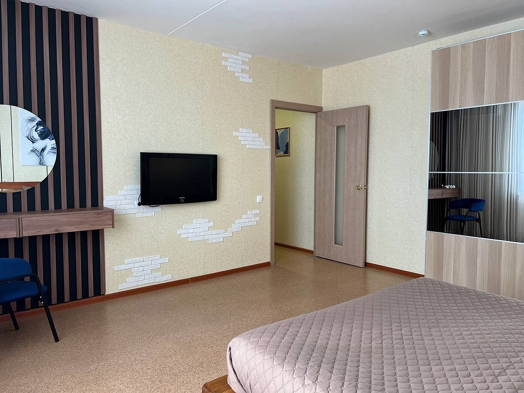 Сдаётся уютная квартира посуточно – идеальное место для комфортного отдыха или деловой поездки! Просторные комнаты: светлые и уютные помещения создают атмосферу домашнего тепла. Полностью оборудована: современная мебель, бытовая техника (холодильник, стиральная машина, микроволновка, телевизор), посуда и всё необходимое для проживания. Удобное расположение: близость к центру города, транспортной развязке, магазинам, кафе и достопримечательностям. Комфорт для гостей: свежее постельное белье, полотенца, бесплатный Wi-Fi и круглосуточная поддержка.В номере
