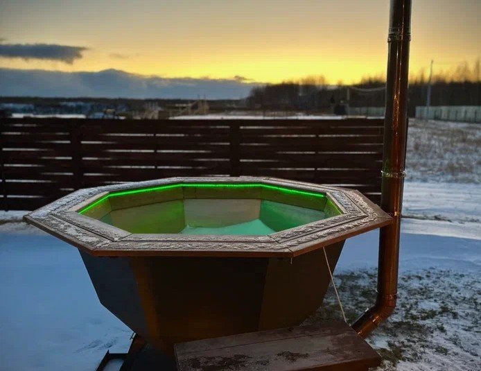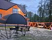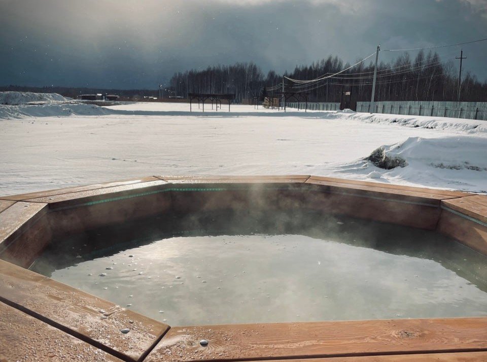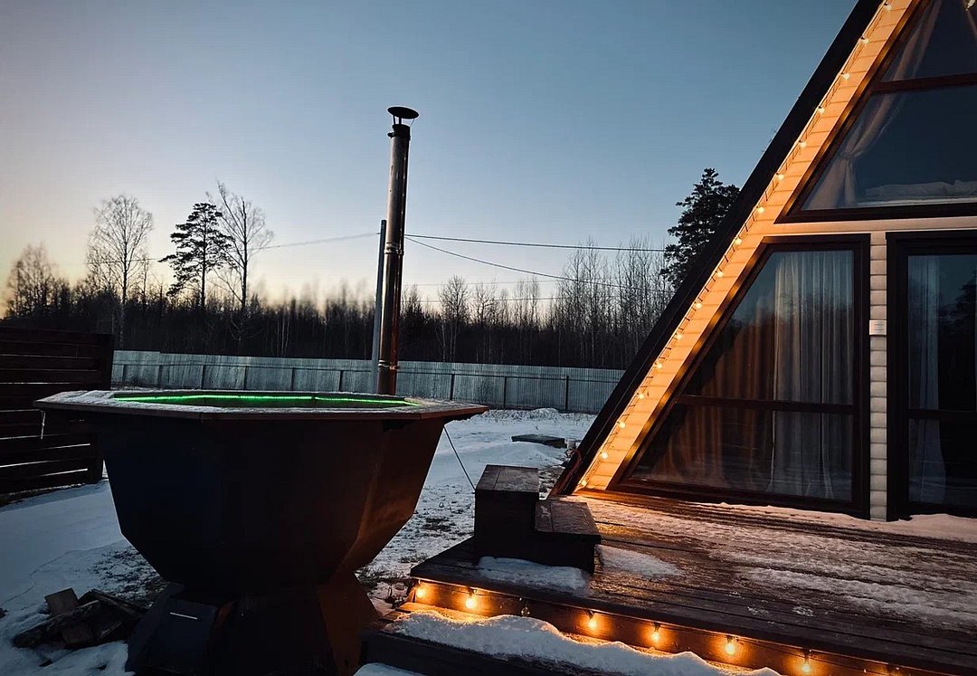 На территории дома: зона для барбекю, сибирский банный чан на дровах, русская баня, парковка.