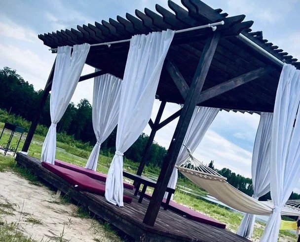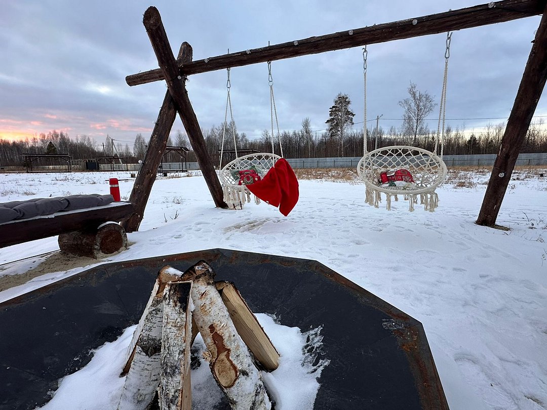 Рядом с каждым дом обустроена мангальная зона, где гости могут пожарить мясо и овощи. Также расположен сибирский банный чан и русская баня. Для автомобилей гостей – организовано парковочное пространство. Также имеется зона для костровища и плетеные качели, где приятно просто провести время или насладиться звездным небом летним вечером.