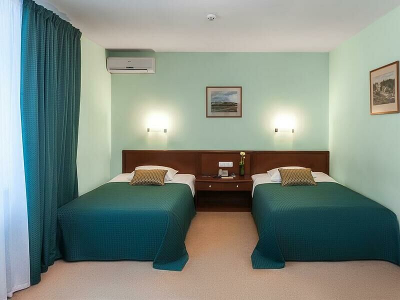 Современное здание отеля, оснащенное лифтами, предлагает для размещения 49 комфортабельных номеров категории Люкс, Полулюкс, Стандарт и Стандарт Улучшенный. Номера, выдержанные в актуальном классическом стиле, оснащены необходимой мебелью, техникой, ванной комнатой с душем, в некоторых Люксах предусмотрено джакузи.