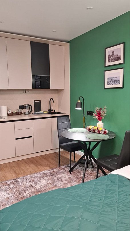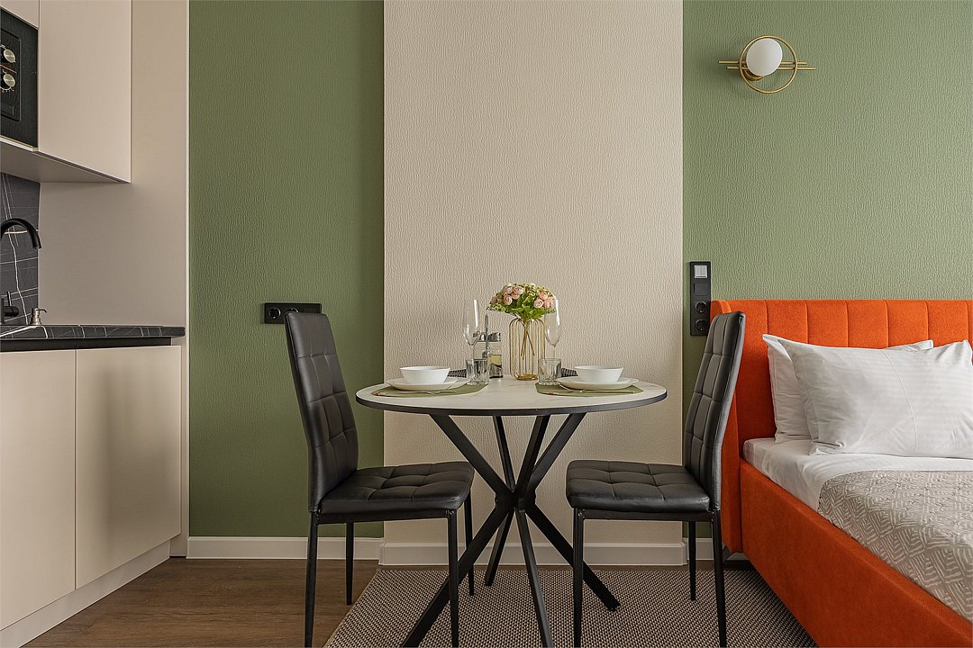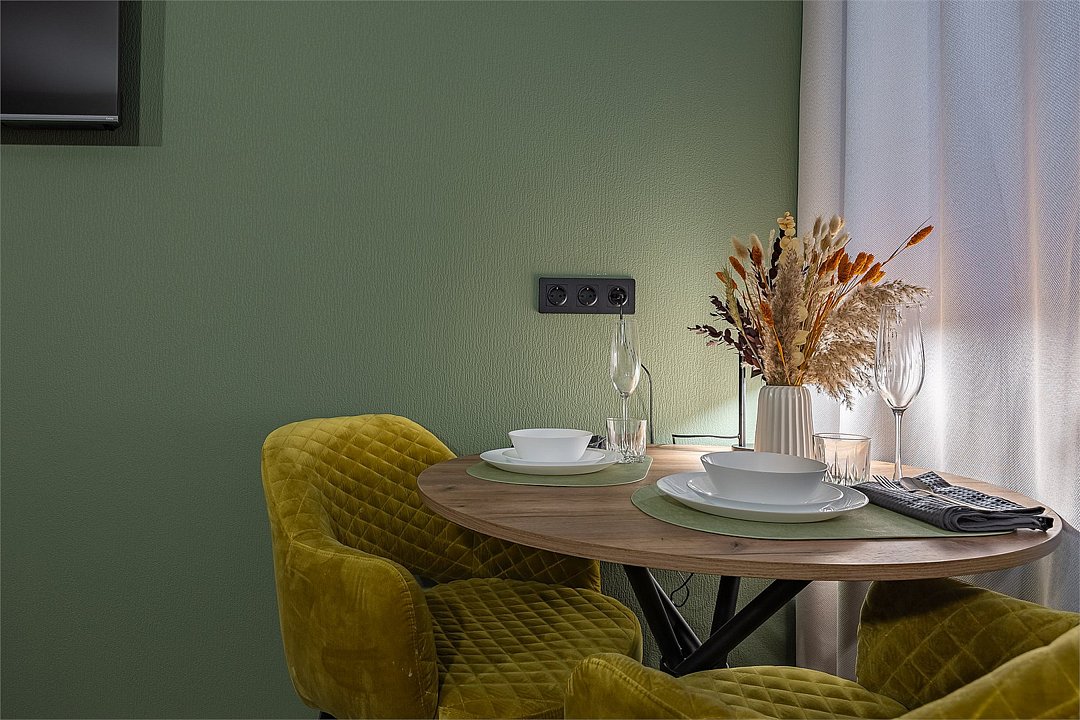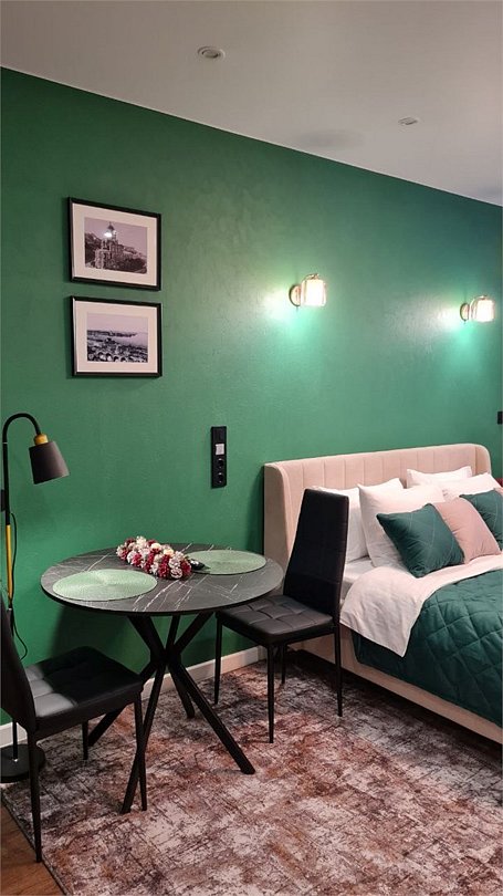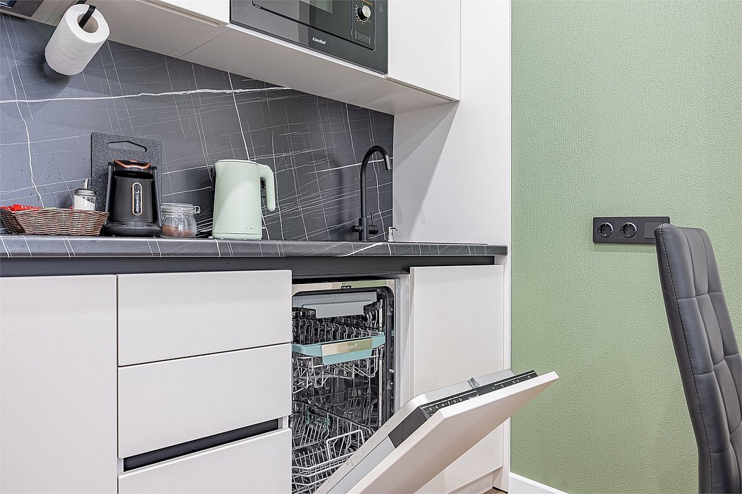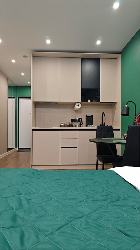 Для комфортного проживания апартамент оборудован всем необходимым: -широкая кровать 1600*2000 с ортопедическим матрасом, белое постельное белье, по три полотенца на каждого гостя. - для третьего гостя предусмотрено раскладное кресло с топером - полностью оборудованная кухня: индукционная плита, холодильник, СВЧ, посудомоечная машина (предоставляются таблетки для ПММ, губка для мытья посуды, полотенце), фильтр питьевой воды Аквафор 3 степени очистки, посуда для приготовления пищи, столовые приборы на три персоны, чай, сахар, специи - беспроводной Интернет - телевизор Smart TV -кондиционер "тепло-холод" - ковер - тапочки - фен - утюг При проживании более 2 ночей меняем полотенца, при проживании более 4 ночей проводим уборку номера Правила бесконтактного заселения и регистрации в отеле: - перед заселением оплачивается депозит за весь период проживания 3000 рублей, возвращается в день выезда до 20-00, после уборки и проверки номера (при соблюдении гостем правил проживания) - регистрация гостей осуществляется по документу, удостоверяющему личность (паспорт гражданина РФ, свидетельство о рождении ребенка). - после оплаты депозита и регистрации гостя по документу, гостю направляется код от электронного замка для самостоятельного заселения в апартамент Мы не принимаем с животными, курение в номере, вечеринки запрещены. При нарушении данных условий залог за номер не возвращается.Услуги и удобства