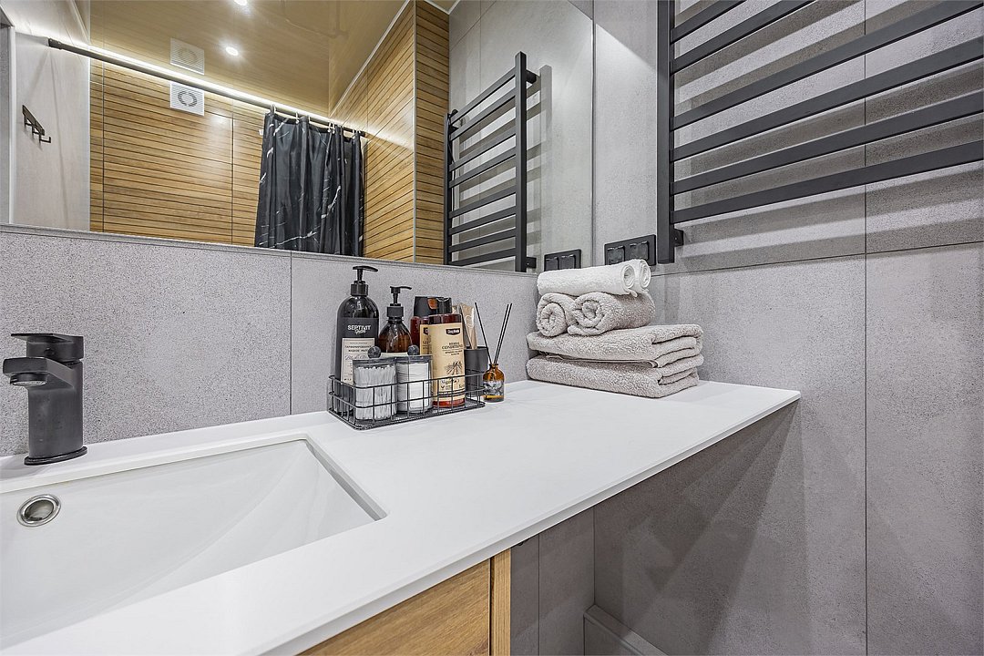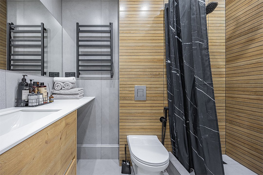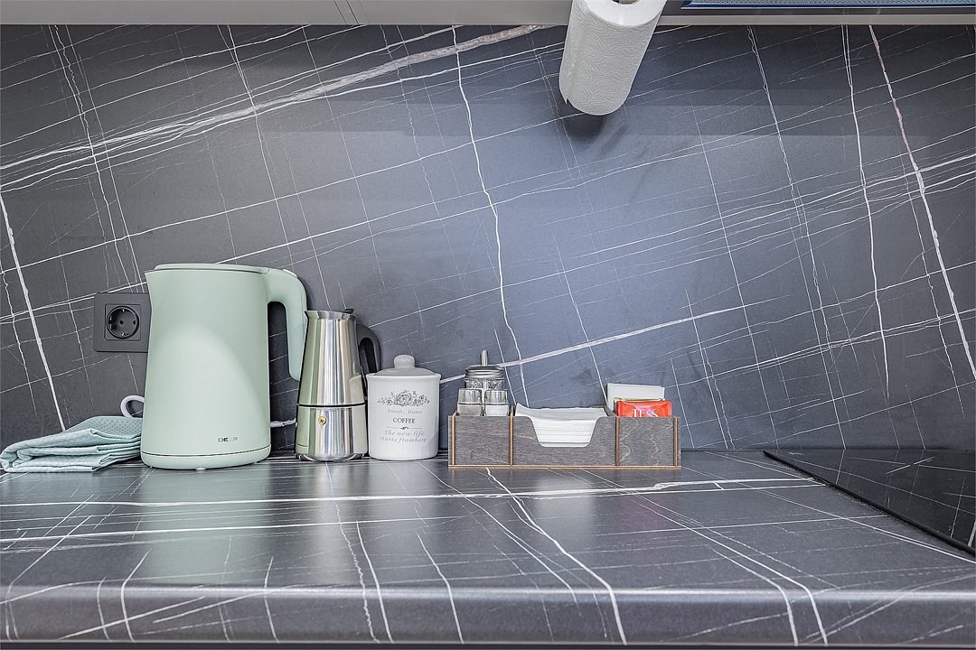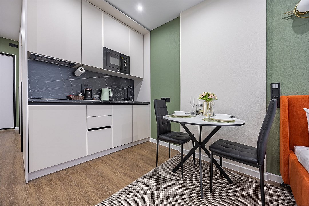 Для комфортного проживания апартамент оборудован всем необходимым: -широкая кровать 1600*2000 с ортопедическим матрасом, белое постельное белье, по три полотенца на каждого гостя. - для третьего гостя предусмотрено раскладное кресло с топером - полностью оборудованная кухня: индукционная плита, холодильник, СВЧ, посудомоечная машина (предоставляются таблетки для ПММ, губка для мытья посуды, полотенце), фильтр питьевой воды Аквафор 3 степени очистки, посуда для приготовления пищи, столовые приборы на три персоны, чай, сахар, специи - беспроводной Интернет - телевизор Smart TV -кондиционер "тепло-холод" - ковер - тапочки - фен - утюг При проживании более 2 ночей меняем полотенца, при проживании более 4 ночей проводим уборку номера Правила бесконтактного заселения и регистрации в отеле: - перед заселением оплачивается депозит за весь период проживания 3000 рублей, возвращается в день выезда до 20-00, после уборки и проверки номера (при соблюдении гостем правил проживания) - регистрация гостей осуществляется по документу, удостоверяющему личность (паспорт гражданина РФ, свидетельство о рождении ребенка). - после оплаты депозита и регистрации гостя по документу, гостю направляется код от электронного замка для самостоятельного заселения в апартамент Мы не принимаем с животными, курение в номере, вечеринки запрещены. При нарушении данных условий залог за номер не возвращается.Услуги и удобства