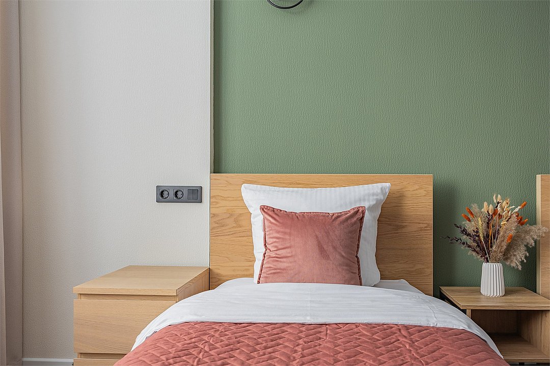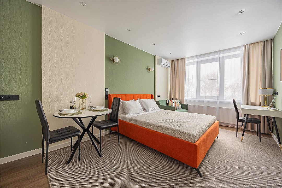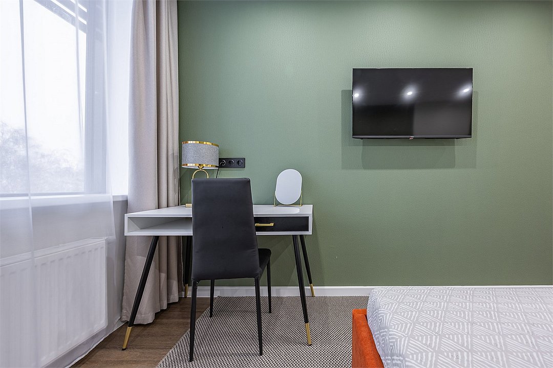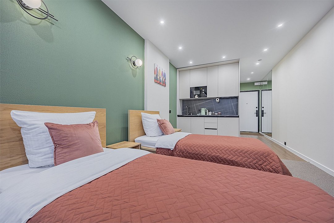 Для комфортного проживания апартамент оборудован всем необходимым: -две односпальные кровати с ортопедическим матрасом, белое постельное белье, по три полотенца на каждого гостя - для третьего гостя предусмотрено раскладное кресло или раскладная кровать с топером - полностью оборудованная кухня: индукционная плита, холодильник, СВЧ, посудомоечная машина (предоставляются таблетки для ПММ, губка для мытья посуды, полотенце), фильтр питьевой воды Аквафор 3 степени очистки, посуда для приготовления пищи, столовые приборы на две персоны, чай, сахар, специи - беспроводной Интернет - телевизор Smart TV -кондиционер "тепло-холод" - ковер - тапочки - фен - утюг При проживании более 2 ночей меняем полотенца, при проживании более 4 ночей проводим уборку номера Правила бесконтактного заселения и регистрации в отеле: - перед заселением оплачивается депозит за весь период проживания 3000 рублей, возвращается в день выезда до 20-00, после уборки и проверки номера (при соблюдении гостем правил проживания) - регистрация гостей осуществляется по документу, удостоверяющему личность (паспорт гражданина РФ, свидетельство о рождении ребенка). - после оплаты депозита и регистрации гостя по документу, гостю направляется код от электронного замка для самостоятельного заселения в апартамент Мы не принимаем с животными, курение в номере, вечеринки запрещены. При нарушении данных условий залог за номер не возвращается.Услуги и удобства