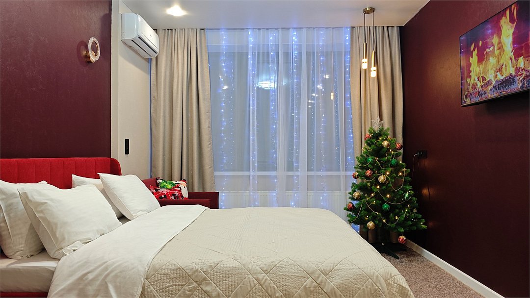 Трехместный апартамент с новогодним дизайном "Гранат" с видом на парк
