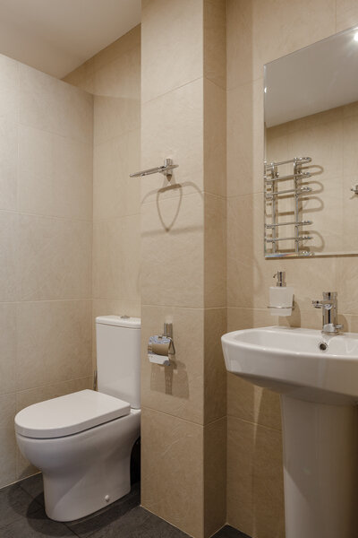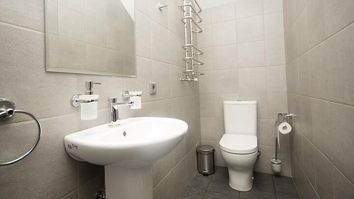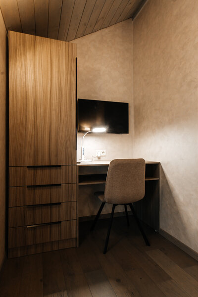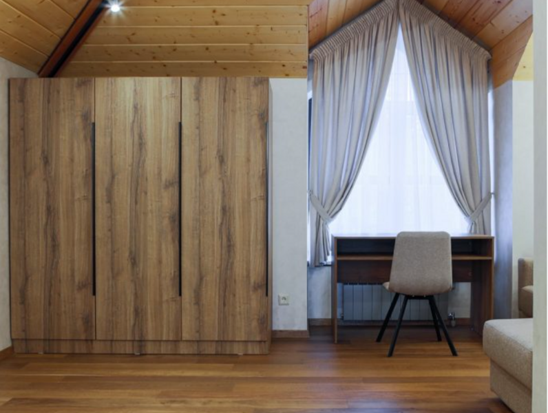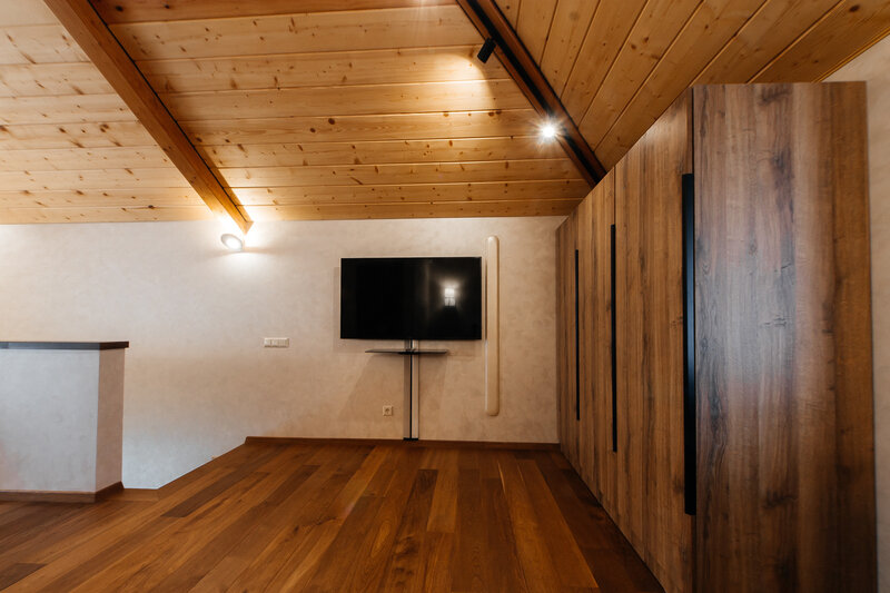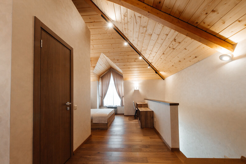 На втором этаже расположены 3 спальни и отдельный санузел. В каждой комнате большая двуспальная кровать, телевизор и сейф. В спальне №2 расположен рабочий стол и отдельная ванная комната.