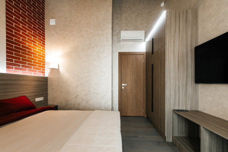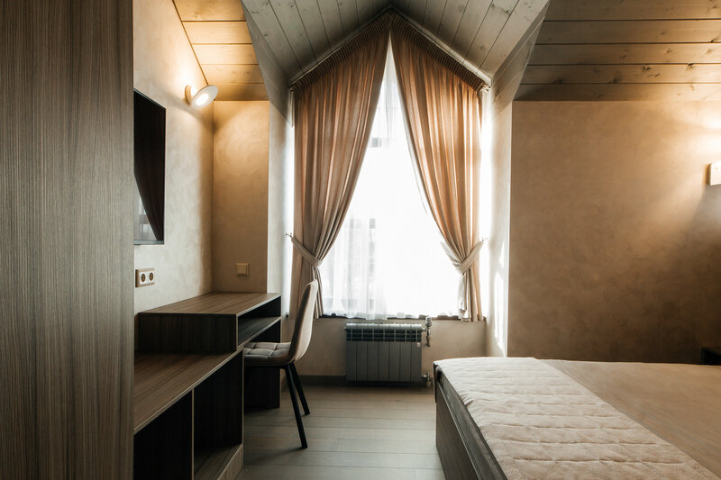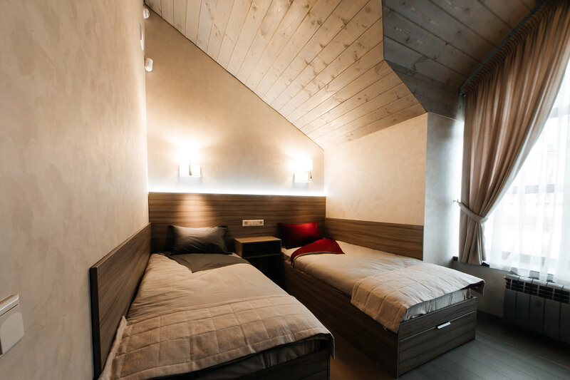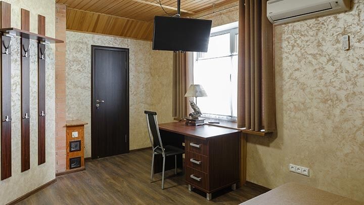 В номерах современный ремонт. Всегда тепло и есть горячая вода. Большая двуспальная кровать, телевизор, сейф, чайник, кондиционер. Бесплатный Wi-Fi.