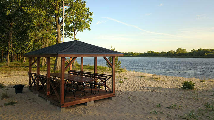 База отдыха «Дубки» предлагает 2 беседки открытого типа в живописном месте на пляже без доступа посторонних (закрытая территория).