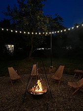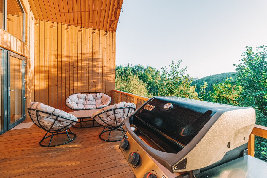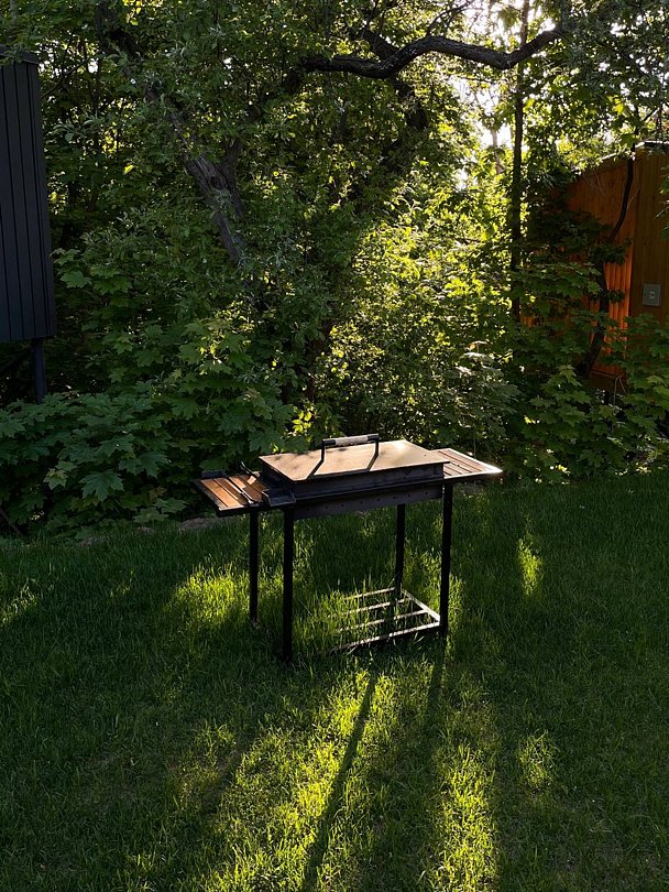 На территории предусмотрены уютные зоны для приготовления еды на открытом воздухе: костровая площадка, гриль на верандах больших домиков и три мангала для гостей малых домиков. По желанию можно арендовать профессиональный газовый гриль NAPOLEON. Это отличная возможность насладиться ароматными блюдами в кругу семьи или друзей.