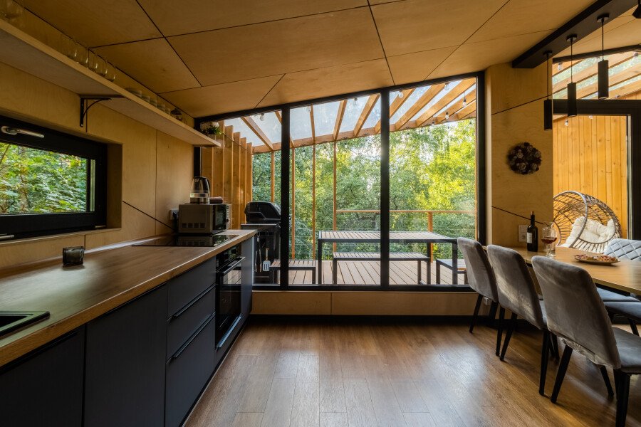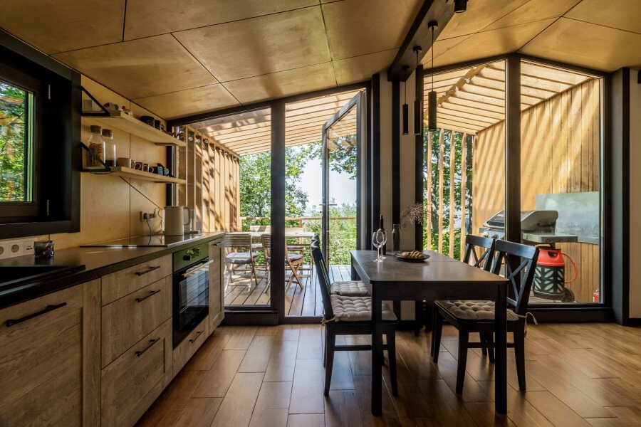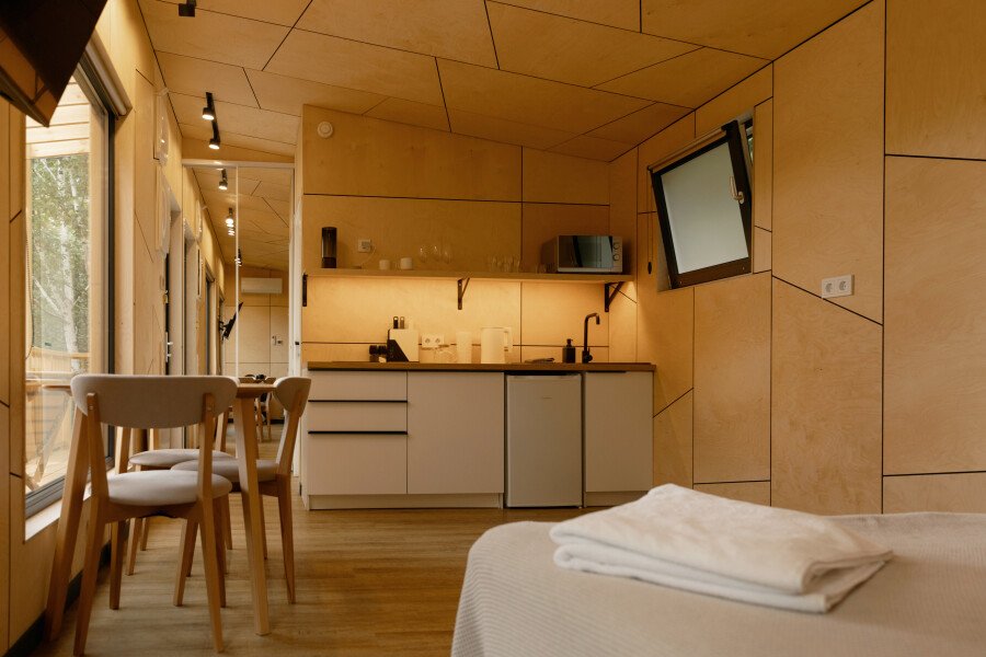 В глэмпинге «DK LAND» созданы все условия для комфортного отдыха и кулинарных экспериментов. Гости, проживающие в больших домиках, могут пользоваться грилями, установленными на верандах, чтобы готовить любимые блюда на свежем воздухе.