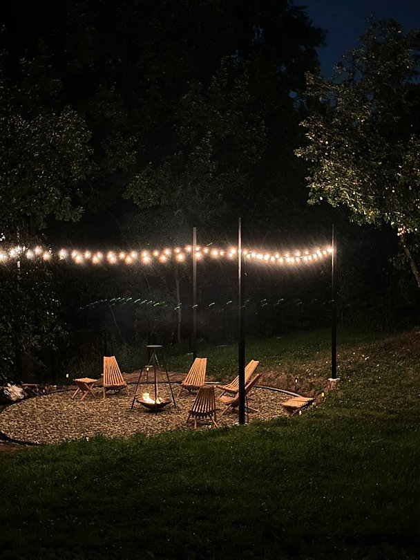 Костровая зона — это место, где вы сможете насладиться живым огнем и теплом костра, поджарить сосиски или маршмеллоу прямо на огне, а также собраться с друзьями или познакомиться с новыми соседями.