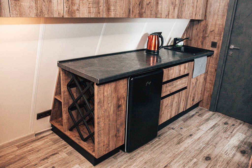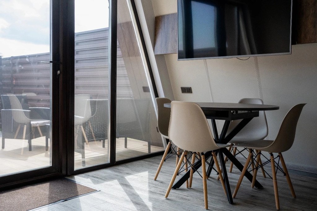 Глэмпинг обставлен и оснащён техникой и мебелью.