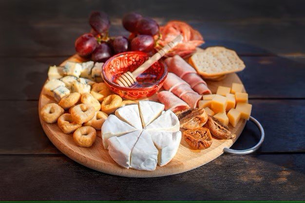 В набор входит: 2 вида изысканных сыров, чтобы насладиться гармонией вкусов. 2 вида пикантных колбасок, добавляющих нотку страсти. Хрустящие сухарики, идеально дополняющие закуски. Сочные виноградные гроздья и орехи, чтобы добавить сладости вашему вечеру.