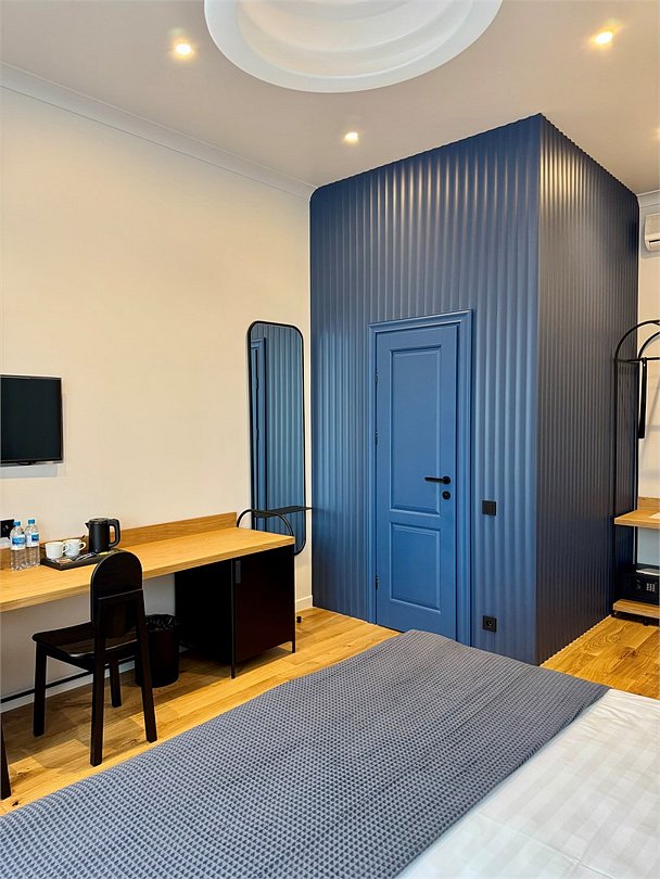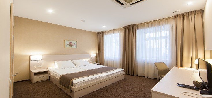 Однокомнатный номер комфортный для размещения одного или двух гостей. Номера представлены в нескольких цветовых решениях и с разными вариантами кроватей (большая двуспальная или две односпальные). Номер не предполагает размещение доп. мест и детских кроваток. Дети до 6 лет включительно могут бесплатно проживать на одной кровати с родителями. В номере: холодильник, кондиционер, сейф, телевизор, телефон, рабочая зона с бесплатным WI-FI, собственный санузел, фен, туалетно-косметические принадлежности.Услуги и удобства