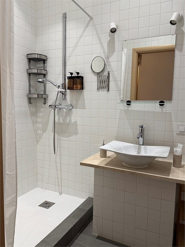телевизор, Wi-Fi, интернет, телефон, кондиционер, светильник, настольные лампы, фен, система безопасности, электронные замки, душевая кабина, ванна, санузел, банные принадлежности, халаты, банные полотенца, тапочки, гигиенические средства, косметические средства, кровать «King size», диван, тумбы, стулья, шкаф для одежды, вешалки, письменный стол, зеркало, мебельный гарнитур, две комнаты, звуконепроницаемые стены и окна, мини-бар, письменные принадлежности, чайный набор, набор посуды, обслуживание номеров, информационная карта, меню, сейф, чайник, унитаз, раковина, мягкая мебель, питьевая вода, гостиная зона, отопление, душ, вид на город, кабинет, кулер на этаже, плиточное покрытие, центральное кондиционирование, раскладной диван, мини-холодильник, уборка номера, шапочка для душа, зеркало в полный ростВ номере