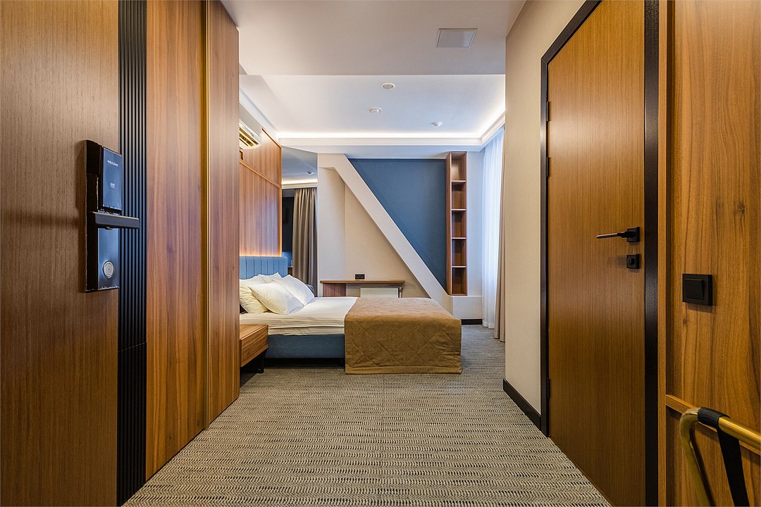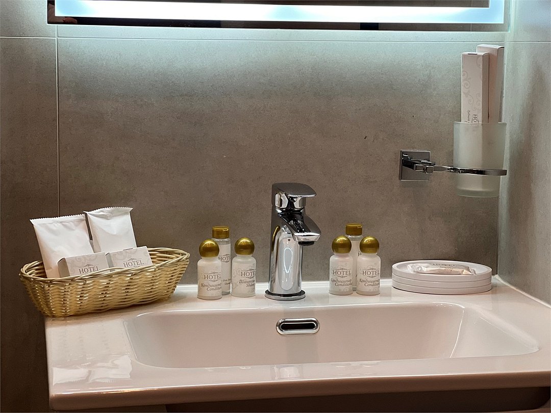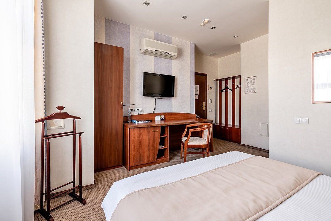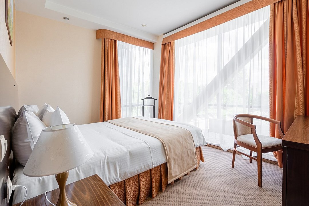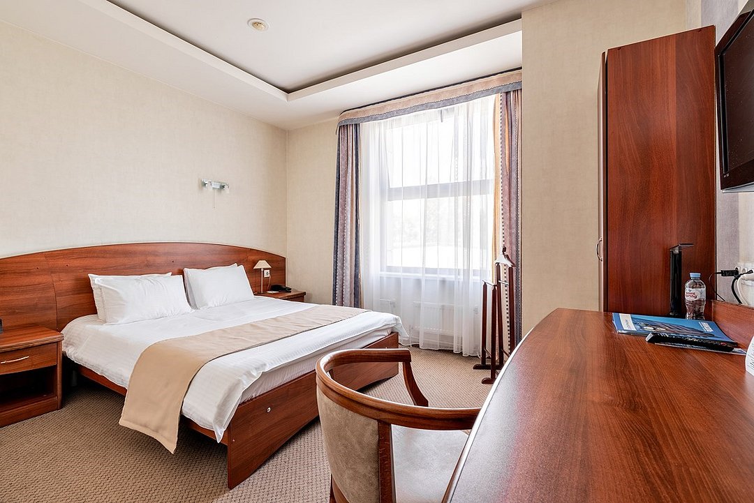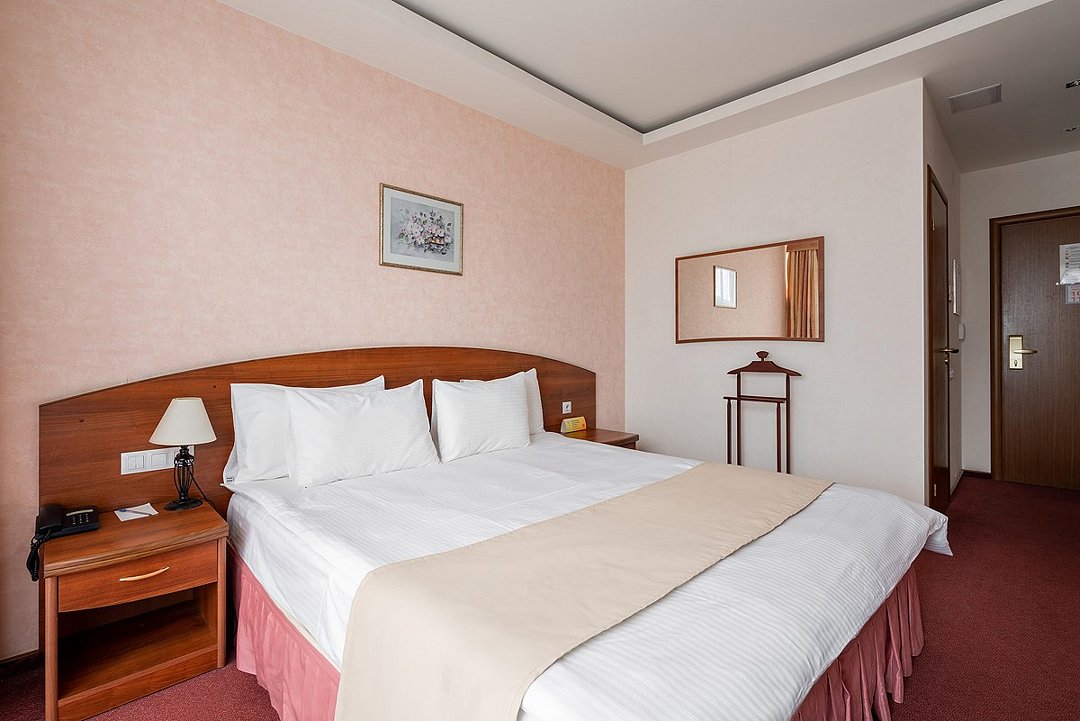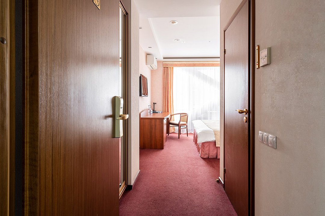 телевизор, Wi-Fi, интернет, телефон, кондиционер, светильник, фен, электронные замки, утюг, ванна или душевая кабина, санузел, банные полотенца, две односпальные или большая двуспальная кровать, стулья, шкаф для одежды, письменный стол, комод, письменные принадлежности, чайный набор, набор посуды, обслуживание номеров, сейф, раковина, ковровое покрытие, душ, вид на город, кулер на этаже, вид во двор, меню подушек, вид на парк, цифровое тв, внутренний телефон, мини-холодильник, бутилированная вода, шапочка для душа, частный двор, мыло, можно с питомцамиВ гостиничном номере