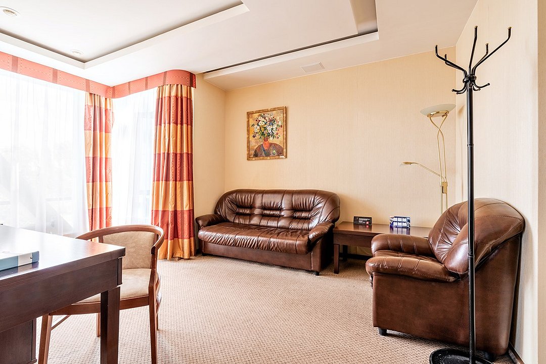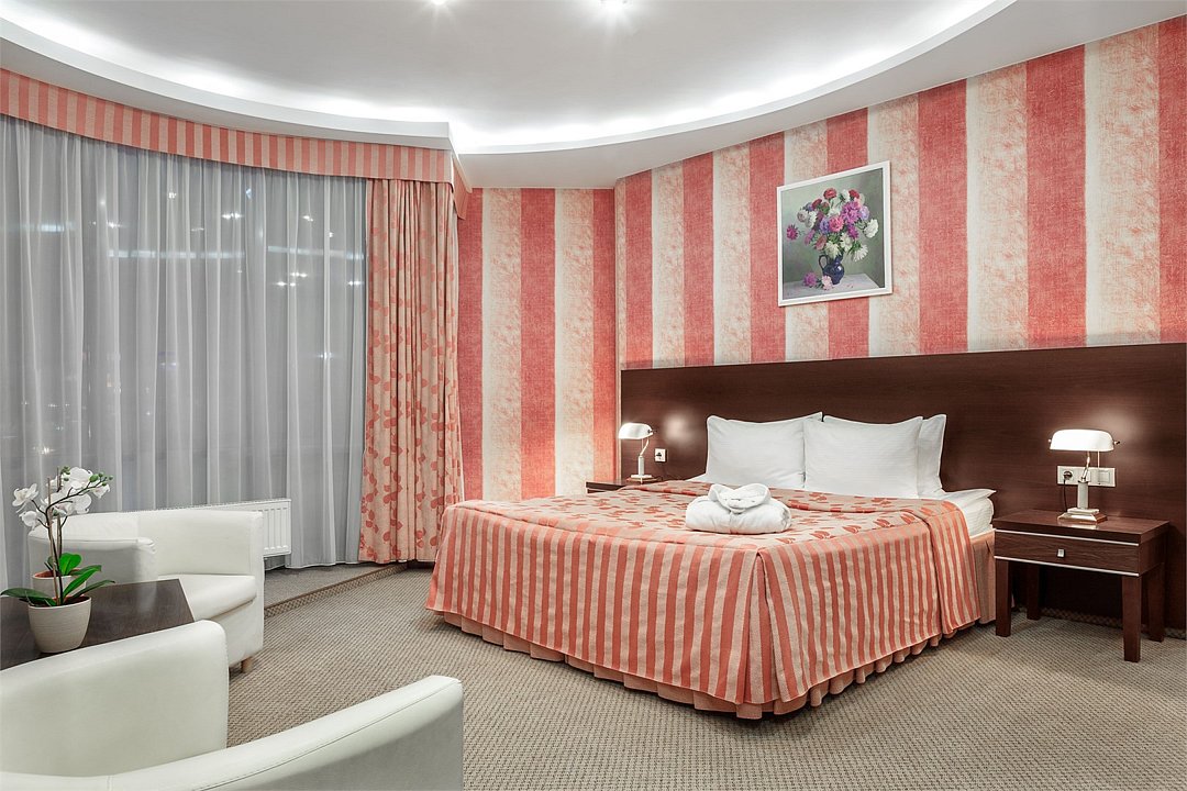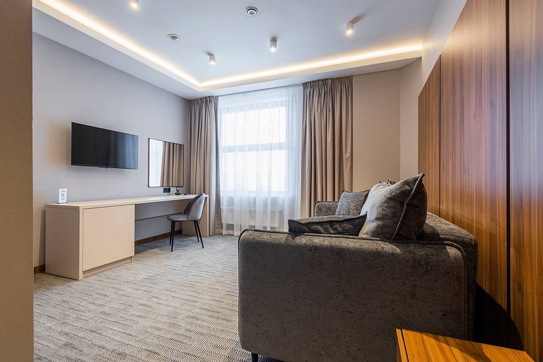 спутниковое телевидение, Wi-Fi, телефон, кондиционер, система климат-контроля, светильник, настольные лампы, фен, система безопасности, электронные замки, ванная комната, ванна, санузел, халаты, банные полотенца, тапочки, гигиенические средства, косметические средства, двуспальная кровать, кресла, шкаф для одежды, вешалки, журнальный столик, письменный стол, багажная тумба, зеркало, две комнаты, письменные принадлежности, чайный набор, обслуживание номеров, информационная карта, меню, сейф, минеральная вода, чайник, унитаз, раковина, косметическое зеркало, гостиная зона, ковровое покрытие, отопление, вид на город, кулер на этаже, кресло, центральное кондиционирование, меню подушек, стаканы, стул, диван-кровать, раскладной диван, телевизор с плоским экраном, мини-холодильник, гостиничная парфюмерия, можно с питомцамиВ гостиничном номере