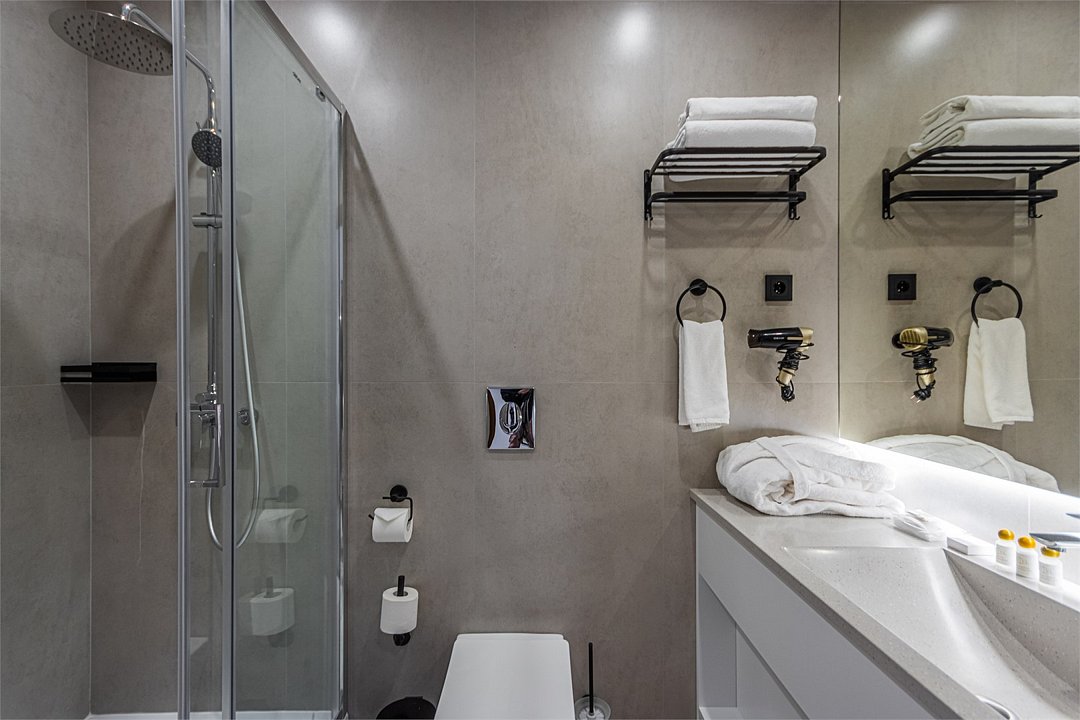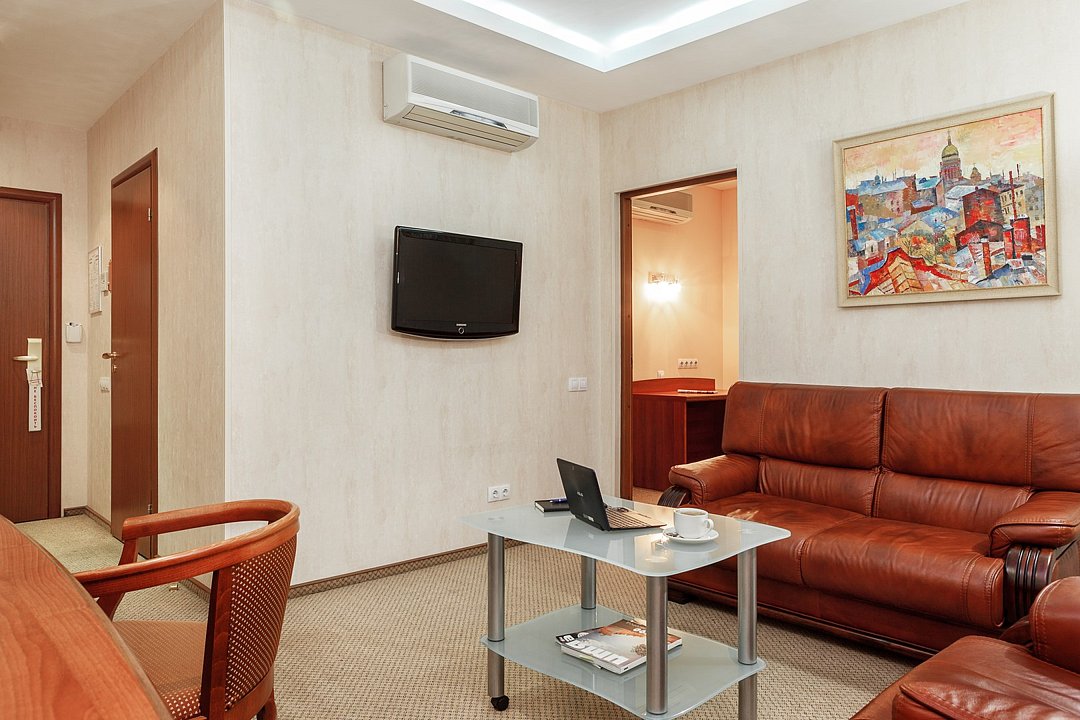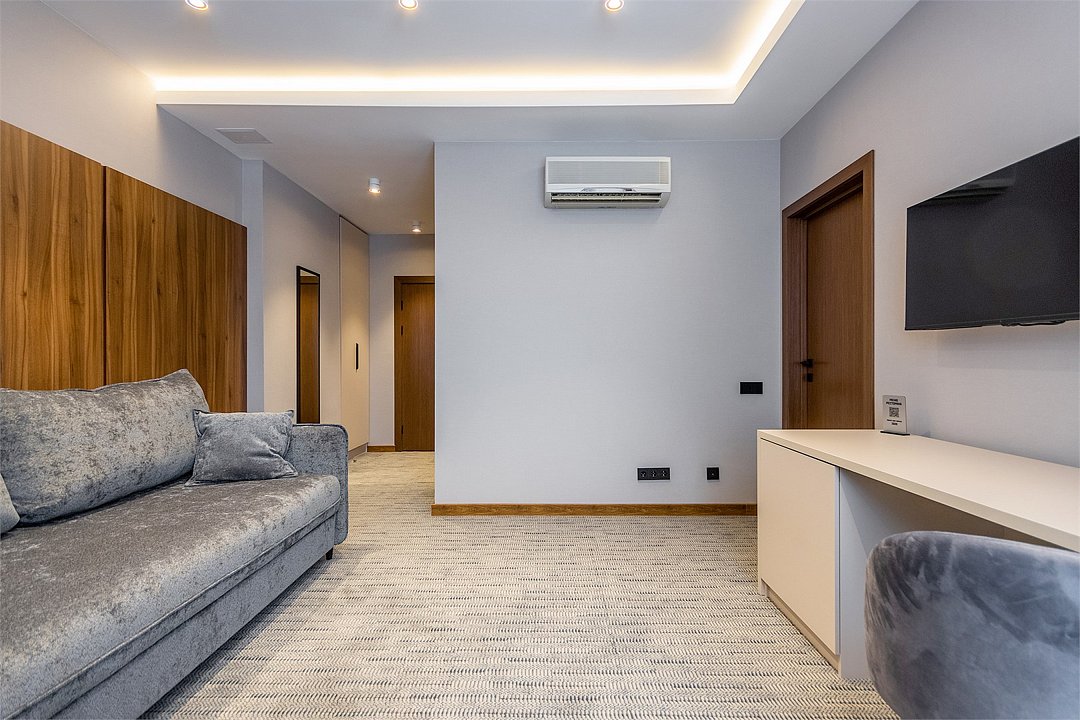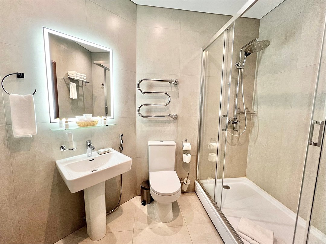 два телевизора, спутниковое телевидение, Wi-Fi, телефон, кондиционер, светильник, фен, электронные замки, ванная комната, душевая кабина, санузел, халаты, банные полотенца, тапочки, косметические средства, кровать «Queen size», диван, тумбы, стулья, шкаф для одежды, гардеробная, журнальный столик, письменный стол, багажная тумба, зеркало, мебельный гарнитур, две комнаты, звуконепроницаемые стены и окна, письменные принадлежности, чайный набор, обслуживание номеров, информационная карта, меню, сейф, минеральная вода, унитаз, раковина, мягкая мебель, косметическое зеркало, питьевая вода, ковровое покрытие, отопление, душ, вид на город, кулер на этаже, меню подушек, стаканы, кофейный столик, стул, стол, тумба, туалетные средства, туалет, диван-кровать, раскладной диван, телевизор с плоским экраном, мини-холодильник, москитная сетка, гостиничная парфюмерия, номер для некурящих, рабочий стол, онлайн-регистрация до заезда, уборка номера, набор для приготовления чая и кофе, бутилированная вода, шапочка для душа, мыло, можно с питомцамиВ гостиничном номере