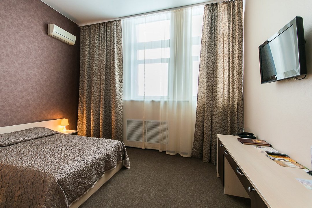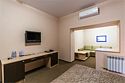 Wi-Fi, интернет, холодильник, кондиционер, настольные лампы, обогреватель, душевая кабина, санузел, банные полотенца, косметические средства, кровать «Queen size», стулья, шкаф для одежды, вешалки, журнальный столик, зеркало, звуконепроницаемые стены и окна, мини-бар, обслуживание номеров, раковина, питьевая вода, ковровое покрытие, отопление, вид на город, кулер на этаже, туалетные средства, цифровое тв, телевизор с плоским экраном, можно с питомцамиВ номере