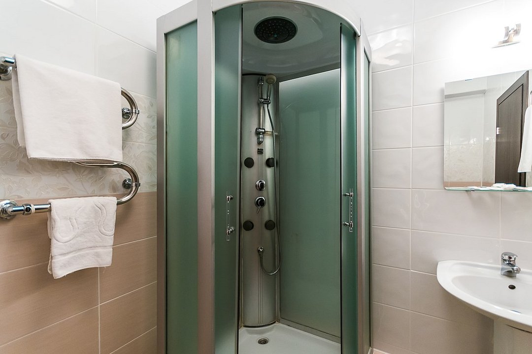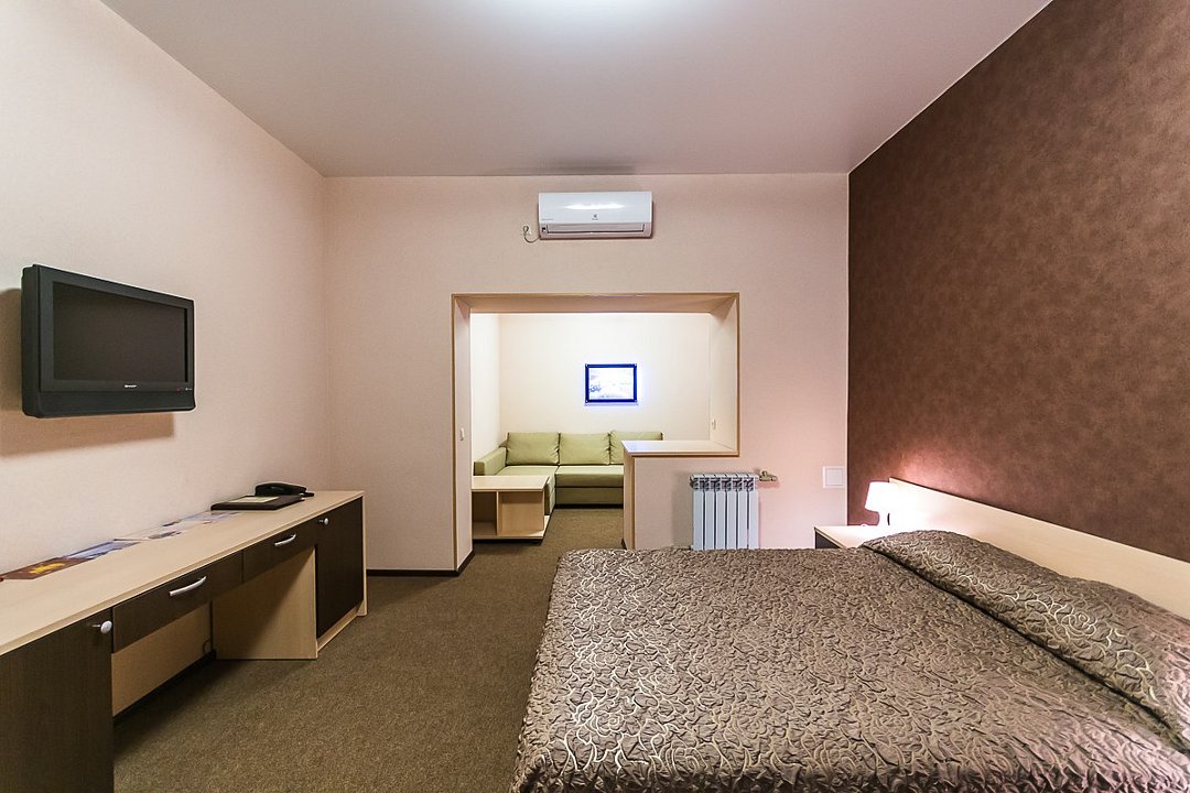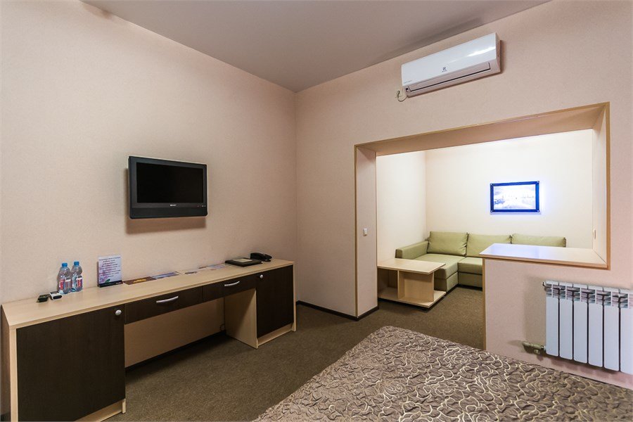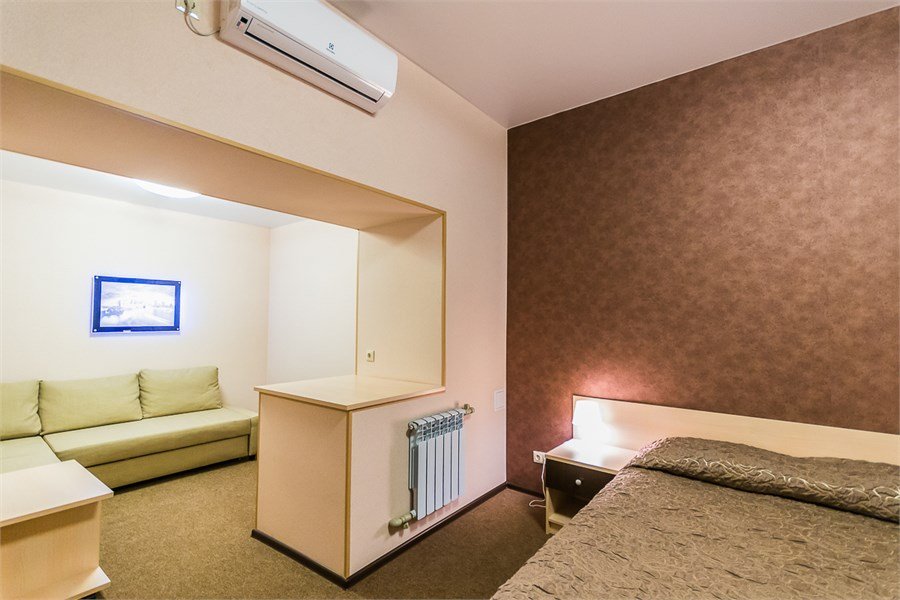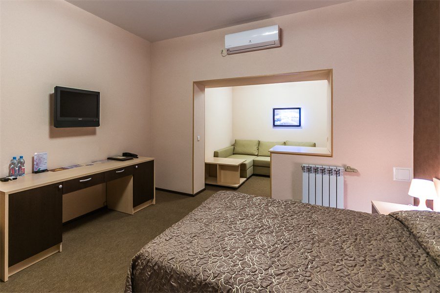 Просторный 2-х комнатный номер Люкс, 2-х спальная кровать Queen size, душевая кабина, телевизор, Smart TV, IPTV, холодильник и кондиционер.Услуги и удобства