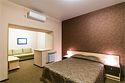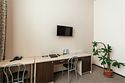 Wi-Fi, интернет, холодильник, кондиционер, настольные лампы, обогреватель, душевая кабина, банные полотенца, косметические средства, полутораспальная кровать, стулья, шкаф для одежды, вешалки, зеркало, звуконепроницаемые стены и окна, мини-бар, обслуживание номеров, унитаз, раковина, питьевая вода, ковровое покрытие, отопление, кулер на этаже, туалетные средства, телевизор с плоским экраном, можно с питомцамиВ номере