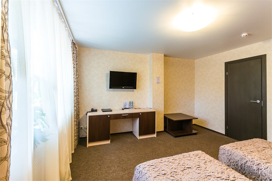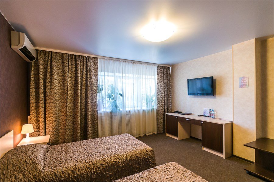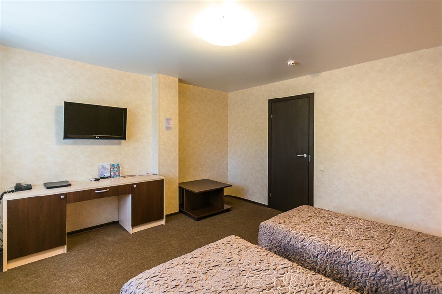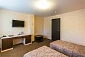 Wi-Fi, интернет, холодильник, кондиционер, настольные лампы, обогреватель, душевая кабина, санузел, банные полотенца, косметические средства, две полутораспальные кровати, стулья, шкаф для одежды, вешалки, журнальный столик, зеркало, звуконепроницаемые стены и окна, мини-бар, обслуживание номеров, минеральная вода, раковина, питьевая вода, ковровое покрытие, отопление, кулер на этаже, туалетные средства, цифровое тв, телевизор с плоским экраном, можно с питомцамиВ номере