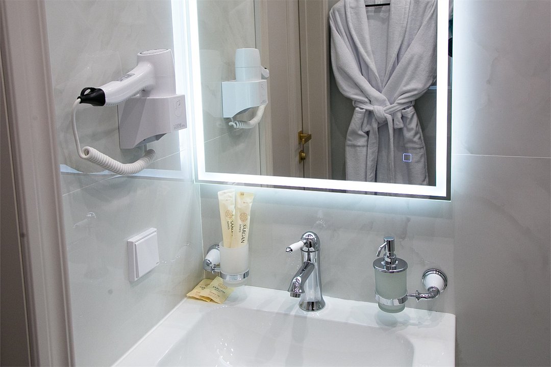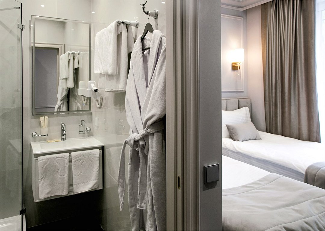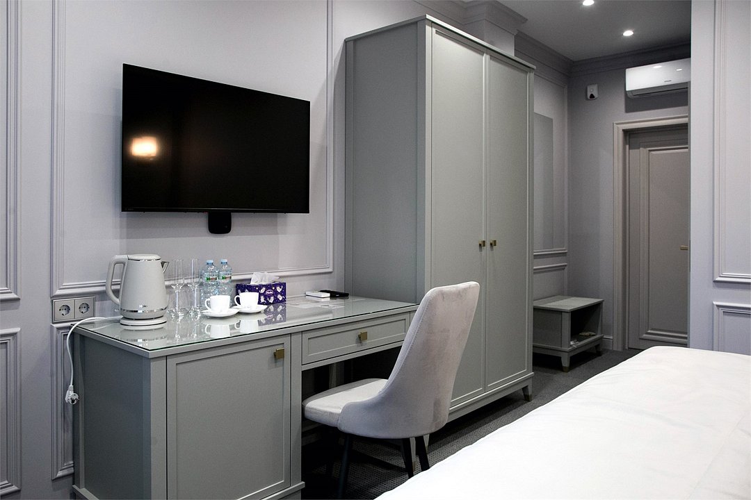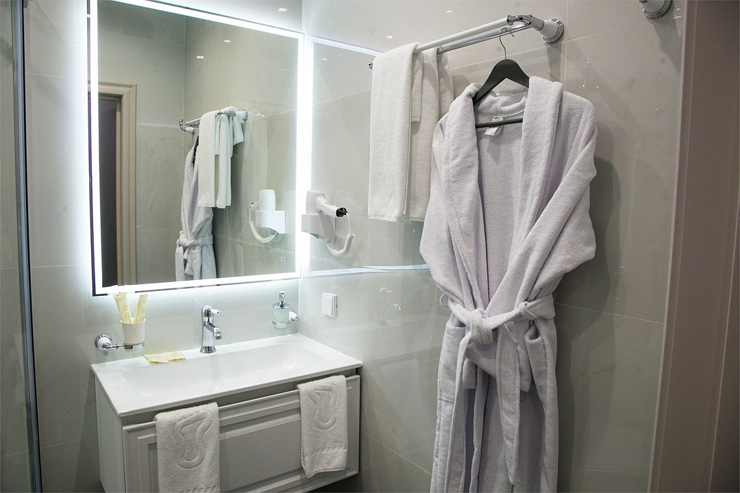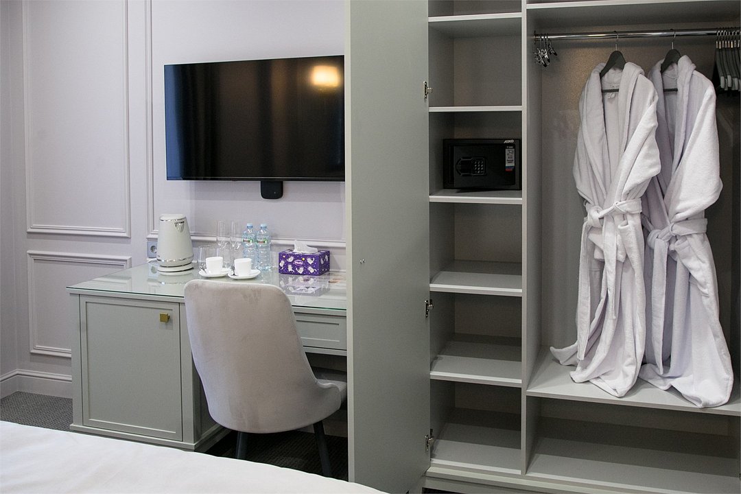 телевизор, Wi-Fi, интернет, холодильник, кондиционер, светильник, фен, утюг, душевая кабина, банные принадлежности, халаты, банные полотенца, тапочки, две односпальные кровати, шкаф для одежды, вешалки, зеркало, унитаз, кулер на этаже, стул, тумба, туалетные средства, туалет, цифровое тв, мини-холодильник, рабочий стол, вешалки-плечикиВ номере