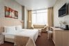телевизор, кабельное телевидение, Wi-Fi, телефон, кондиционер, фен, электронные замки, ванная комната, ванна или душевая кабина, биде, банные полотенца, две односпальные кровати, тумбы, стулья, шкаф для одежды, журнальный столик, письменный стол, багажная тумба, зеркало, чайный набор, сейф, чайник, унитаз, раковина, ковровое покрытие, отопление, вид во двор, высокие потолки, стаканы, стол, туалетные средства, туалет, диван-кровать, мини-холодильникВ гостиничном номере