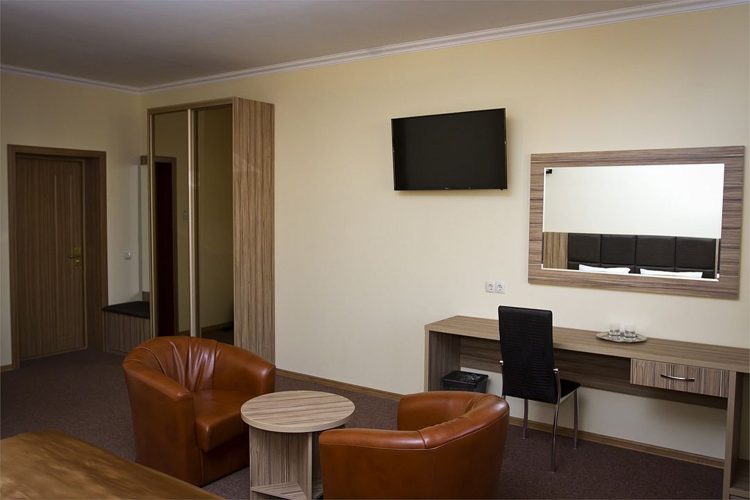 В номере: кровать «King size», телевизор IP-телефон, унитаз, ванна или душевая кабина.