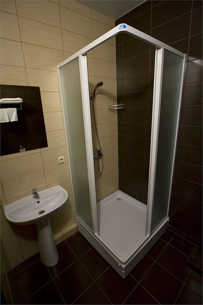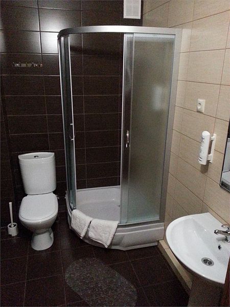 В номере: две полутораспальные кровати, телевизор, телефон, душевая кабина, унитаз.