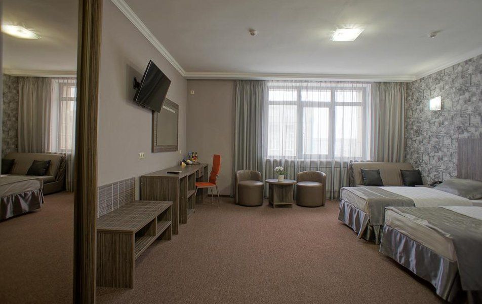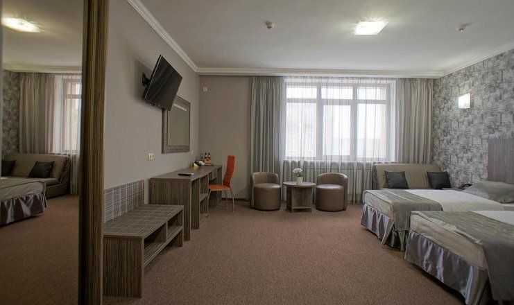 В номере: двуспальная кровать, односпальные кровати, диван-кровать.