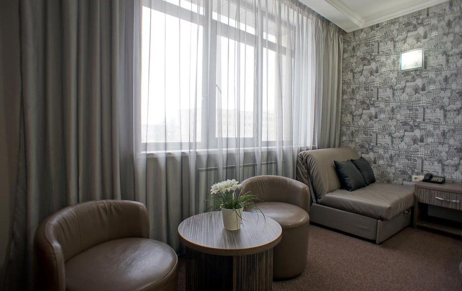 Вид на город. Интернет/телефония, IP-телефон, кровать «King size», вешалки, зеркало, кресла, пуфики, тумбы, шкаф для одежды. Звуконепроницаемые стены и окна, ковровое покрытие, отопление.