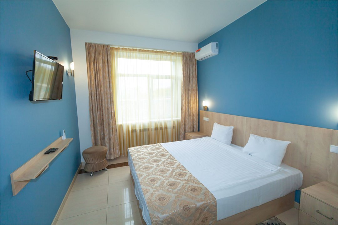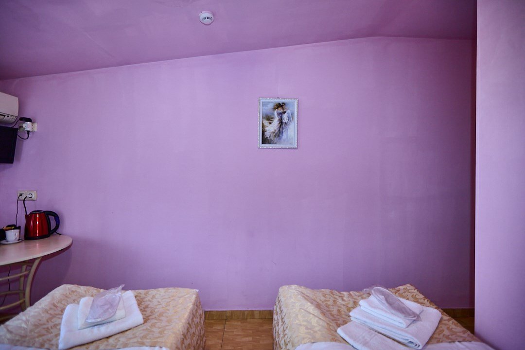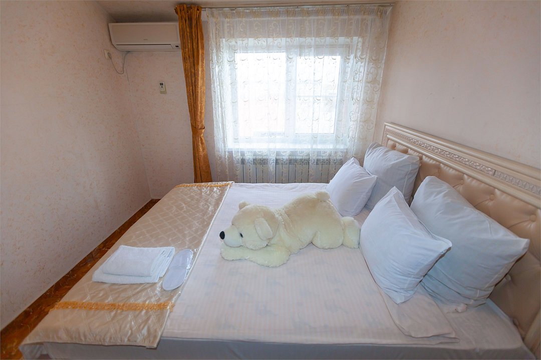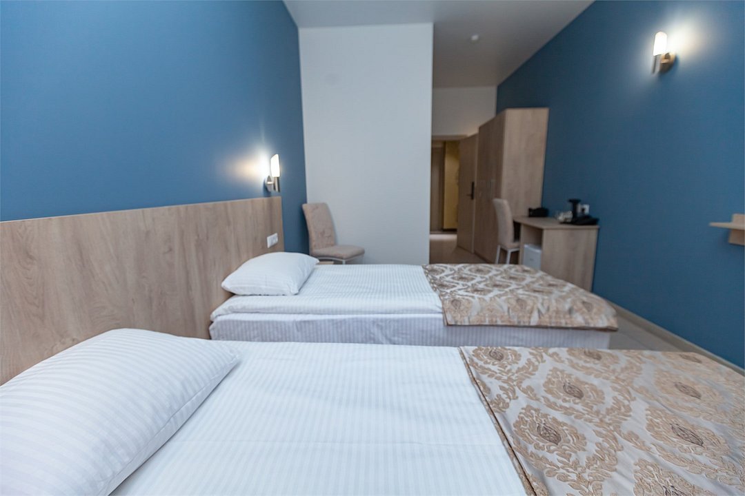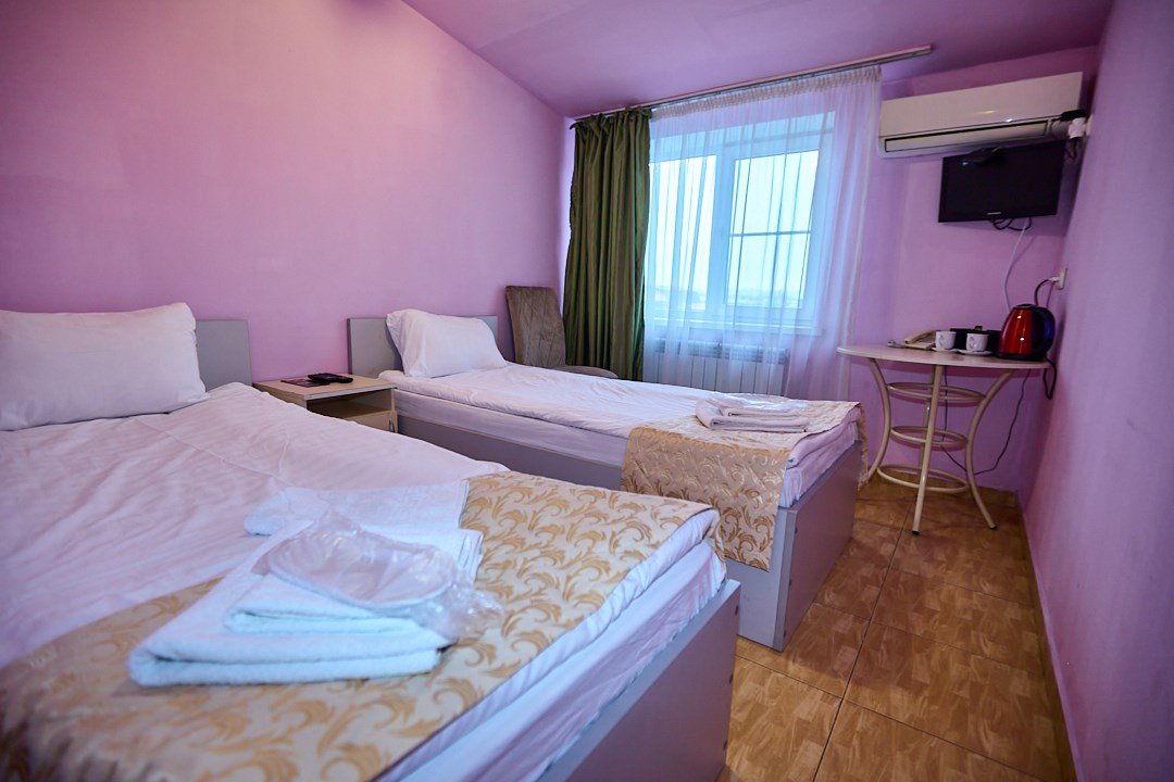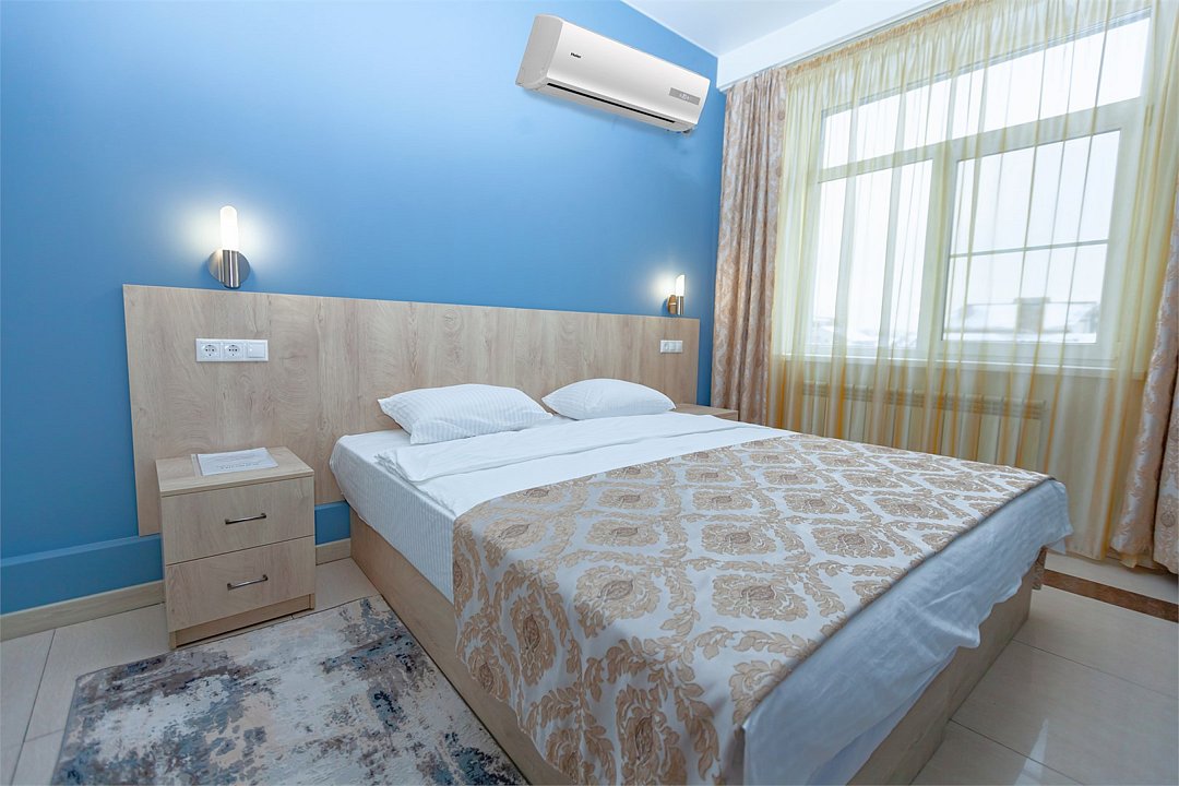- 2-спальная кровать - прикроватные тумбочки - стол - 2 стула - шкаф для одежды 3-створчатый - плазменный телевизор - мини-холодильник - кондиционер - ТВ – федеральные каналы + ID-TV (100 каналов) - VI-FI - электрочайник - посуда (2 чайных набора, остальное – по запросы на ресепшн) - телефон (внутренний, для звонка на ресепшн) - зеркала в полный рост - в сан. узлах: фен, принадлежности для душа – гель, шампунь, тапочки - постельное белье, полотенцаУслуги и удобства
