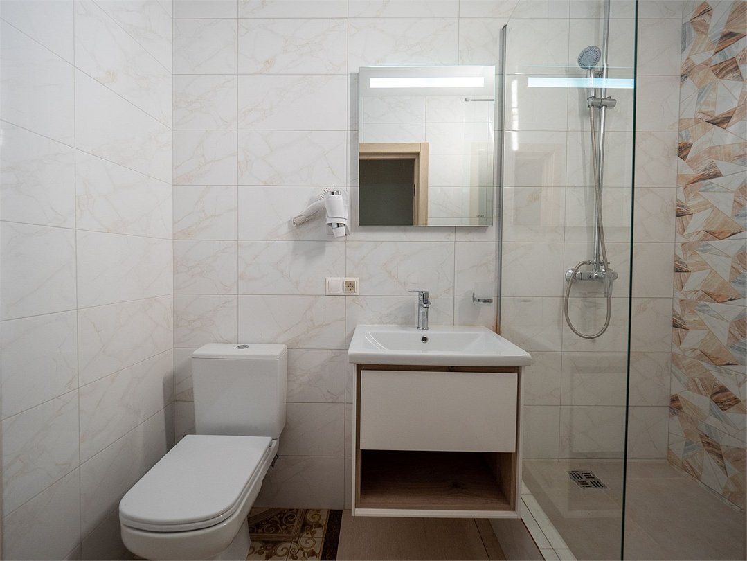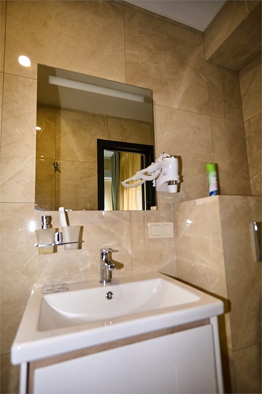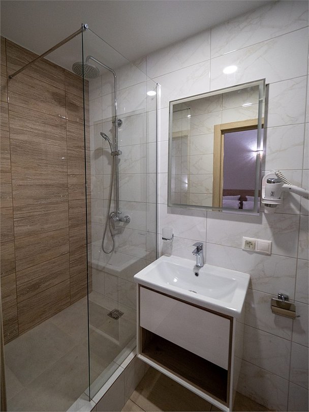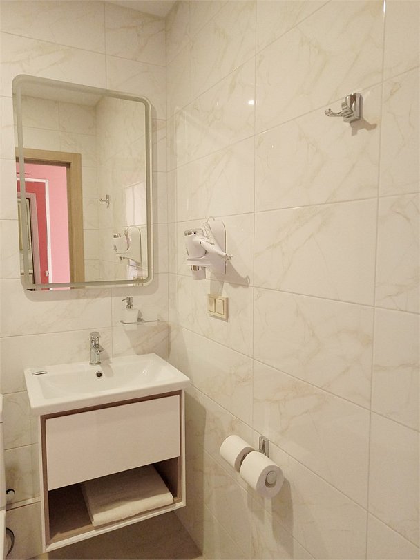 Номер категории "КОМФОРТ. Старый номерной фонд" с 2-спальной кроватью (дата открытия 2016 год) - светлый, с 2-мя окнами. Номер имеет все необходимое для комфортного пребывания в отеле, а именно: телевизор, электрочайник, мини-холодильник, электрофен, столик, стулья, одежный шкаф, зеркало в полный рост, собственный санузел с душевой кабиной, зеркалом с подсветкой.Услуги и удобства