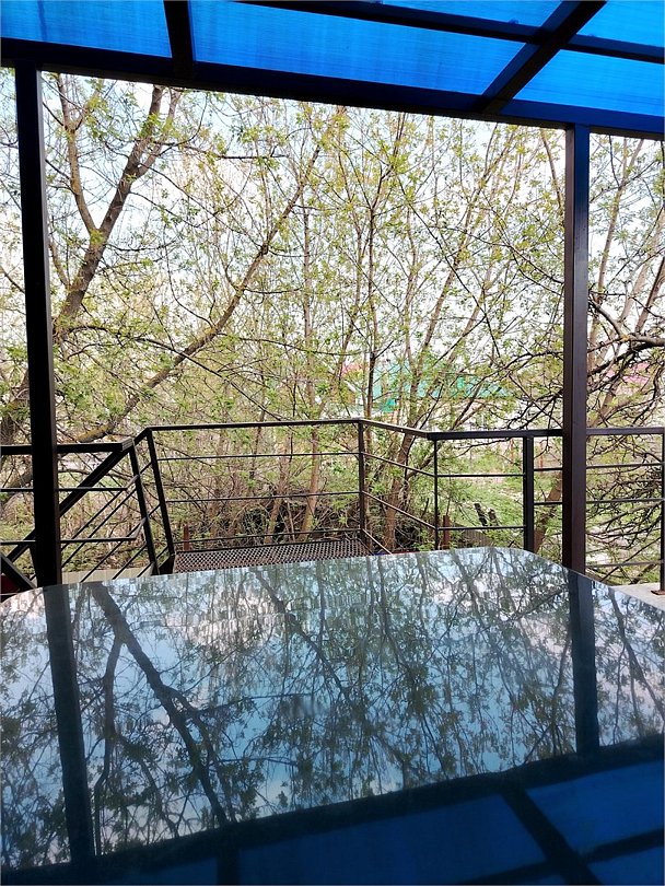 телевизор, Wi-Fi, кондиционер, фен, душевая кабина, санузел, банные полотенца, тапочки, гигиенические средства, косметические средства, балкон, терраса, двуспальная кровать, тумбы, стулья, шкаф для одежды, чайник, унитаз, раковина, отдельный вход в номер, душ, вид на сад, вид во двор, стул, стол, тумба, туалет, телевизор с плоским экраном, номер для некурящих, пуфик, навесВ гостиничном номере