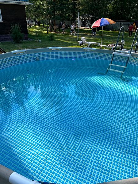 Тип бассейна: открытый бассейн, каркасный бассейнРядом с бассейном: шезлонги, зонтикиНа территории базы отдыха рядом с баней оборудован летний бассейн с местами для отдыха.