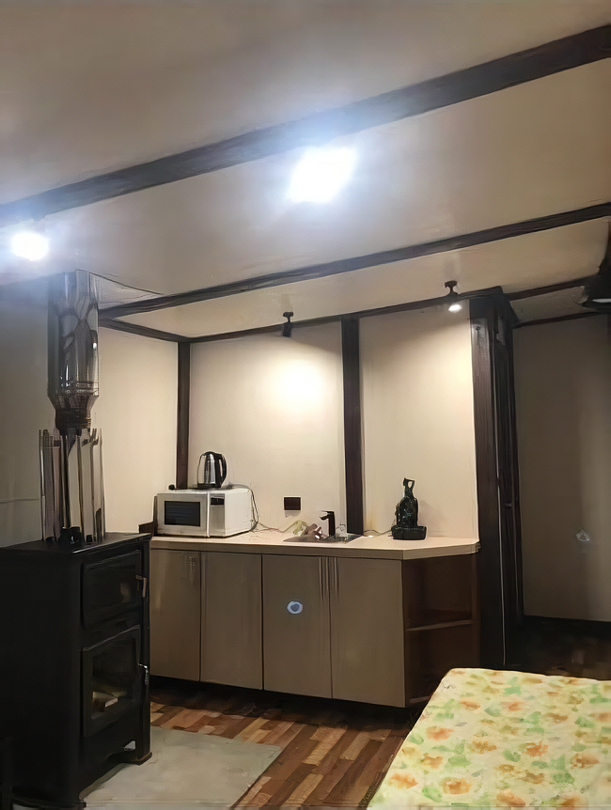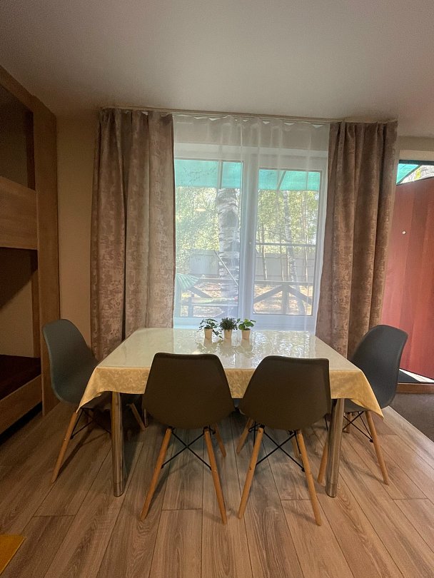 Четырёхместный номер в таунхаусе. Номер имеет отдельный вход с улицы, оборудован душевой кабиной и санузлом, а также в каждом номере есть электрический чайник.