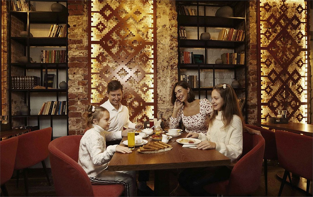 Категория номера «Семейный» Комфортный и просторный двухкомнатный номер с мини-кухней, номер, который подойдет как для поездок семьей, так и для компании друзей. В одной из комнат есть зона отдыха с раскладным диваном и обеденным столом. В вашем распоряжении будет: -Двуспальная кровать king-size / две раздельные полутороспальные кровати (на ваш выбор), дополнены угловым двуспальным диваном; -2-х комнатный номер -Окна в тихий двор; -Этаж: 1/2/3 (3 этаж - мансарда); -Оборудованная мини-кухня со всем необходимым инвентарем; -Микроволновая печь; -Индукционная плита; -Кондиционер -Цифровое TV 20 каналов, Smart-TV; -Высокоскоростной бесплатный Wi-Fi; -Холодильник; -Телевизор с диагональю 43"; -Гигиенические принадлежности; -Гипоаллергенное постельное белье и подушки; -Полноценная ванная комната внутри номера (ванна); -Чайные принадлежности; -Фен и тдУслуги и удобства