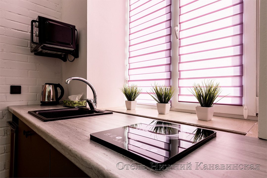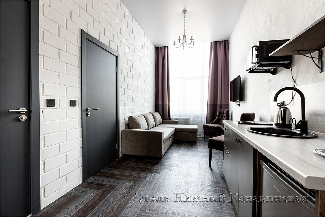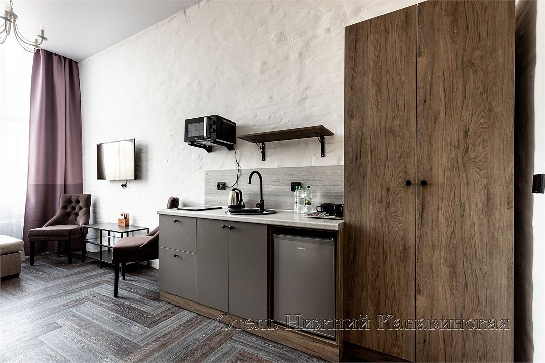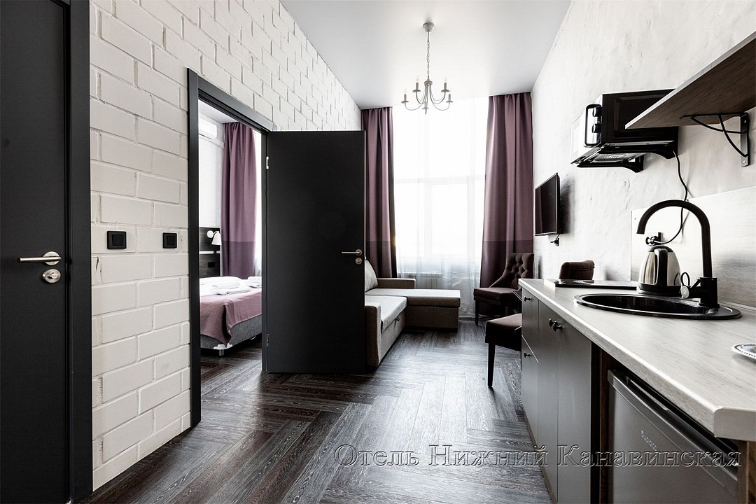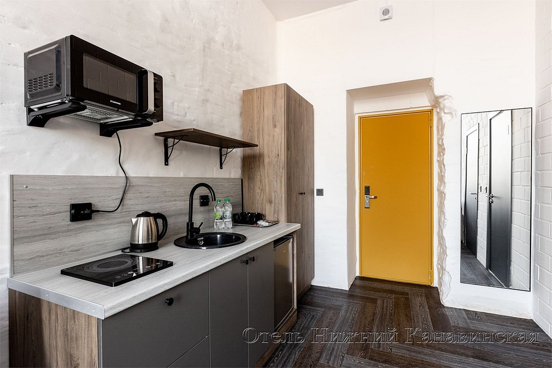 Категория номера «Люкс» Комфортный и просторный двухкомнатный номер с мини-кухней, номер, который подойдет как для поездок семьей, так и для компании друзей. В одной из комнат есть зона отдыха с раскладным диваном и обеденным столом. В вашем распоряжении будет: -Двуспальная кровать king-size / две раздельные полутороспальные кровати (на ваш выбор), дополнены угловым двуспальным диваном; -2-х комнатный номер -Окна в тихий двор; -Этаж: 1/2/3 (3 этаж - мансарда); -Оборудованная мини-кухня со всем необходимым инвентарем; -Микроволновая печь; -Индукционная плита; -Кондиционер -Цифровое TV 20 каналов, Smart-TV; -Высокоскоростной бесплатный Wi-Fi; -Холодильник; -Телевизор с диагональю 43"; -Гигиенические принадлежности; -Гипоаллергенное постельное белье и подушки; -Полноценная ванная комната внутри номера (ванна); -Чайные принадлежности; -Фен и тдУслуги и удобства