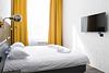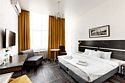 Wi-Fi, фен, электронные замки, ванна, банные принадлежности, банные полотенца, тапочки, гигиенические средства, косметические средства, две односпальные или большая двуспальная кровать, стулья, вешалки, зеркало, чайный набор, минеральная вода, чайник, унитаз, раковина, вид во двор, ламинат, высокие потолки, стол, туалетные средства, туалет, цифровое тв, телевизор с плоским экраном, мини-холодильник, номер для некурящих, без питомцевВ номере