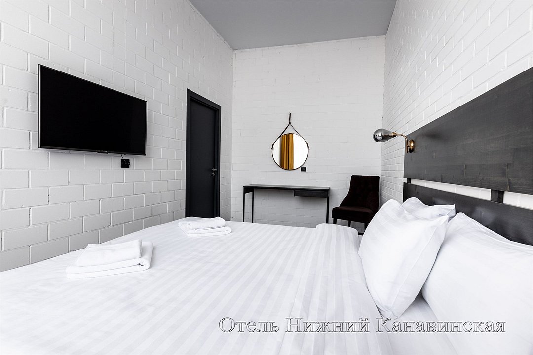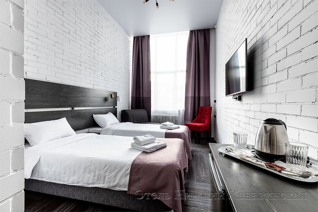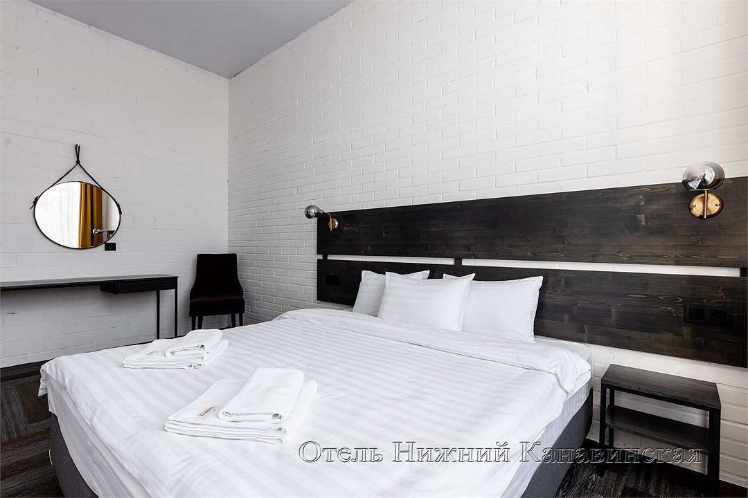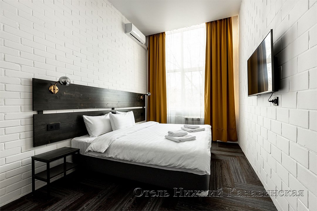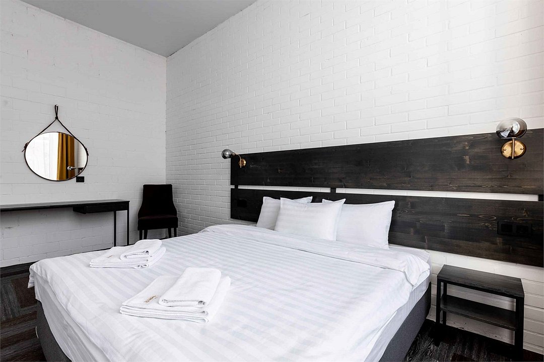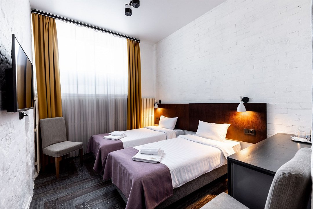 Номер категории "ЭКОНОМ" Номер оснащен всем необходимым для комфортного проживания и спокойного сна. Удобная кровать позволит вам сполна восстановить силы после насыщенного дня, также имеется рабочая зона. Номера располагаются на цокольном этаже, в новом отдельно стоящем модульном корпусе и на 3 -м мансардном этаже. Номер укомплектован всем необходимым, в том числе: -Две раздельные односпальные кровати или одна двуспальная кровать (на ваш выбор); -Цифровое TV 20 каналов, Smart-TV; -Высокоскоростной бесплатный Wi-Fi; -Мини-холодильник; -Телевизор с плоским экраном и диагональю 32"; -Гигиенические принадлежности; -Гипоаллергенное постельное белье и подушки; -Полноценная ванная комната внутри номера (ванна); -Чайные принадлежности (в т.ч. чайник); -Фен.Услуги и удобства