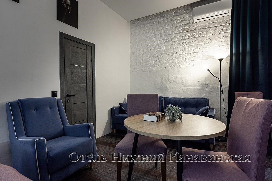 Категория номера «ПОЛУЛЮКС» Отличный вариант для семьи с ребенком или любителей больших пространств. Вам обеспечены комфорт, возможность расслабиться и насладиться полноценным отдыхом за счет площади номера. В вашем распоряжении будет: -Двуспальная кровать king-size / две раздельные полутороспальные кровати (на ваш выбор), дополнены кресло-кроватью/диваном; -Оборудованная мини-кухня со всем необходимым инвентарем; -Этаж: 1/2/3 (3 этаж - мансарда), цоколь; -Кондиционер -Цифровое tv 20 каналов, smart-tv; -Высокоскоростной бесплатный wi-fi; -Холодильник; -Телевизор с диагональю 43"; -Гигиенические принадлежности; -Гипоаллергенное постельное бельё и подушки; -Полноценная ванная комната внутри номера (ванна/душ); -Чайные принадлежности; -Фен и тд.Услуги и удобства